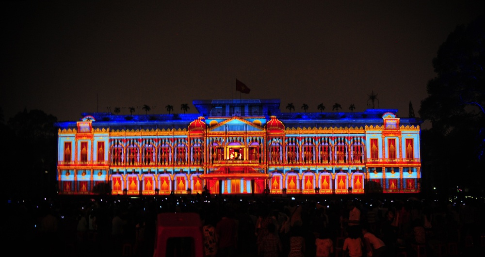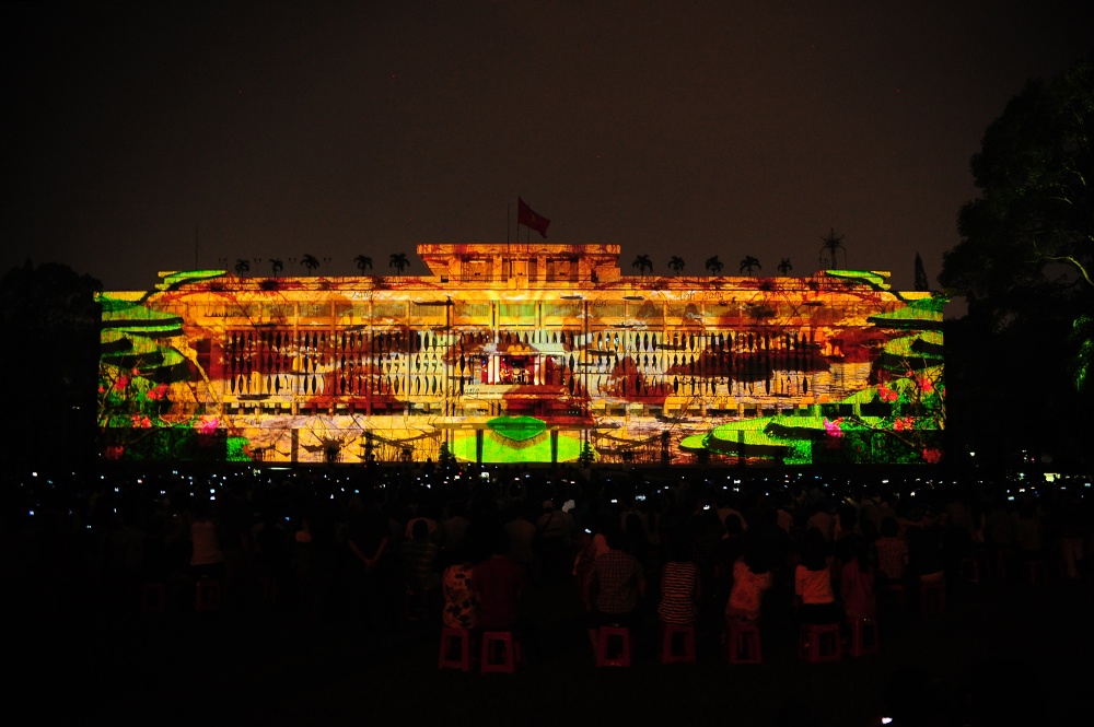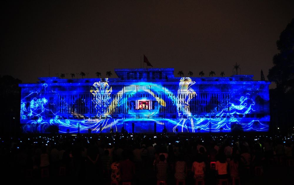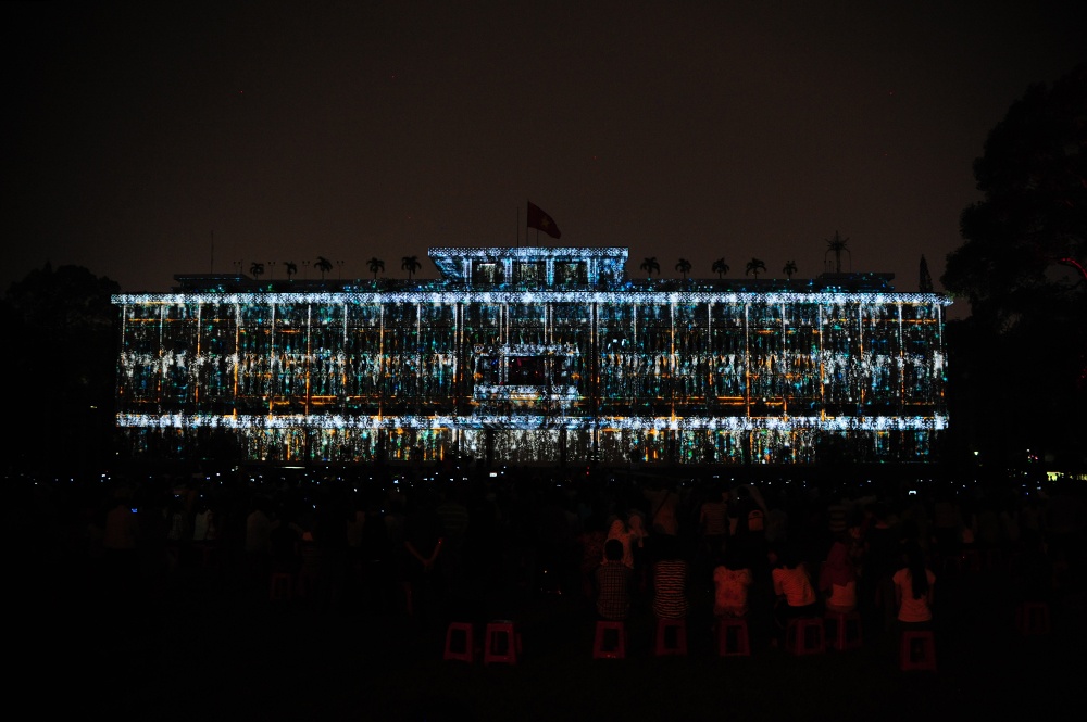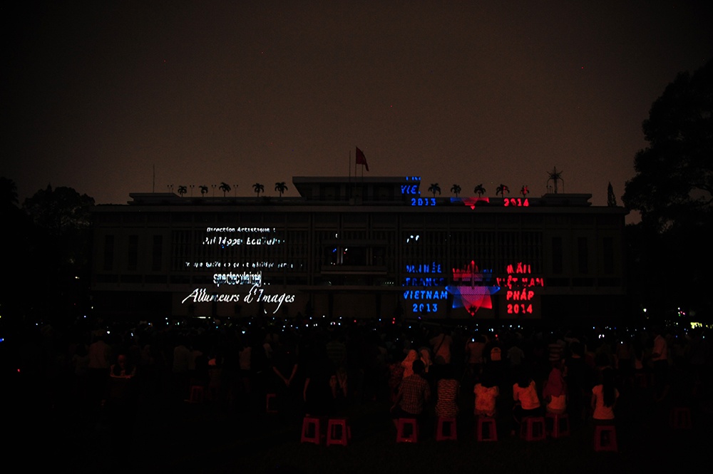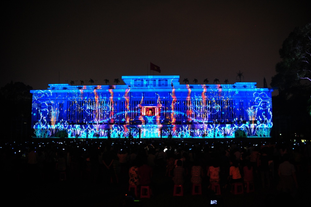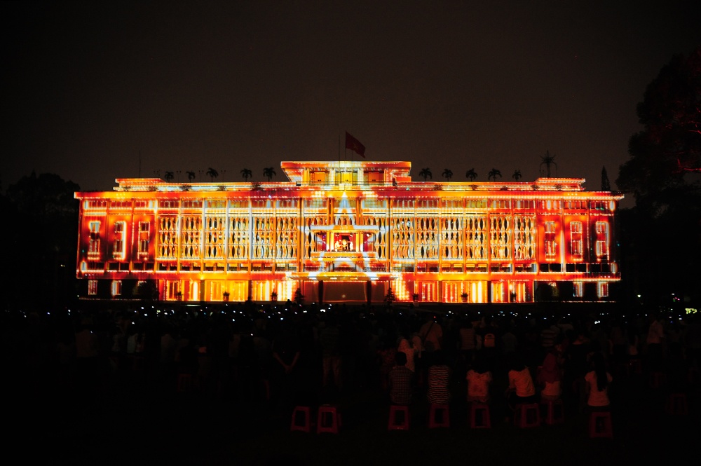 Hôm nay, tại Dinh Thống Nhất (Q1, TP.HCM), các nghệ sĩ Pháp và Việt Nam đã cùng tạo nên một màn trình diễn ánh sáng ấn tượng.
