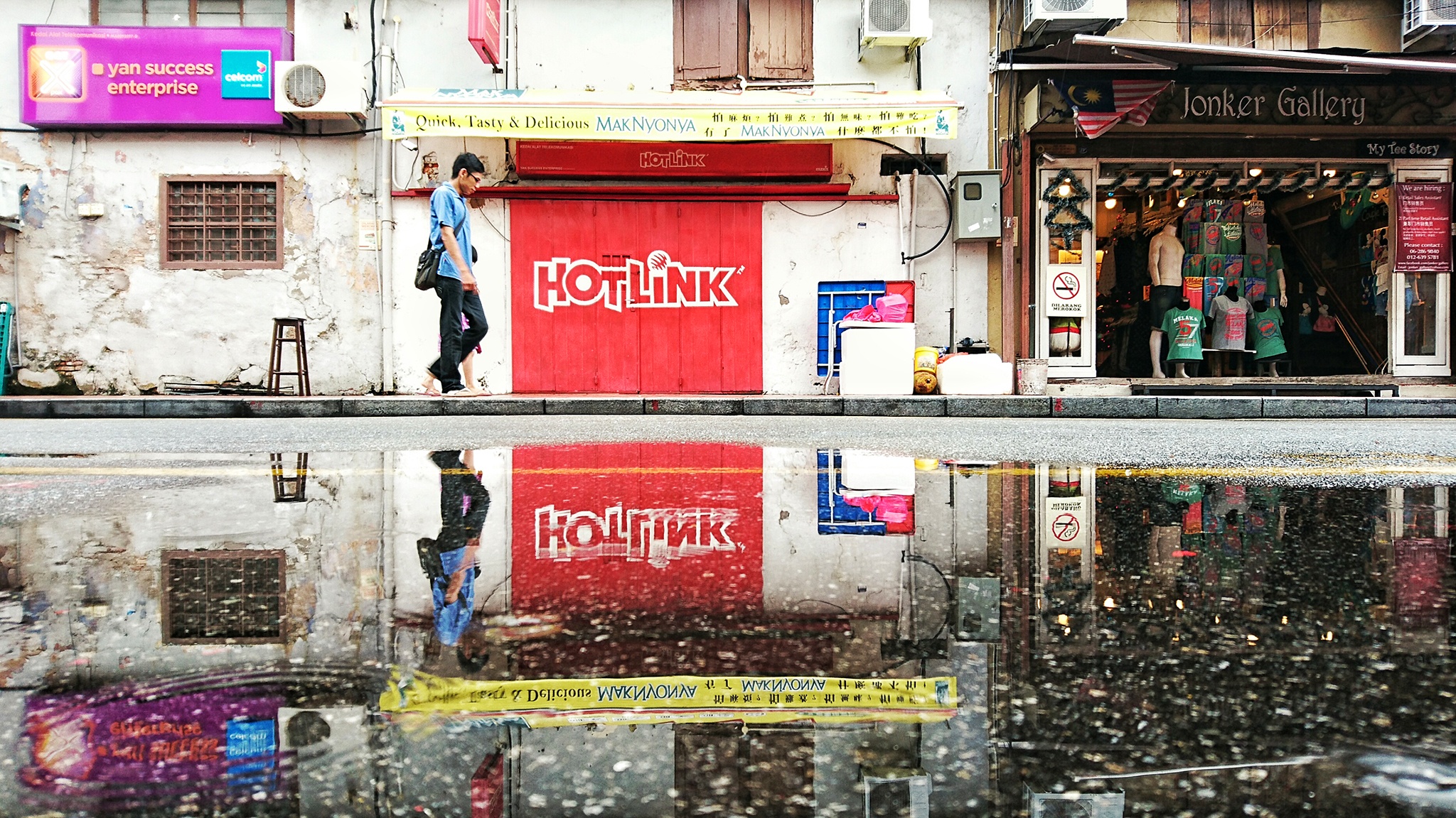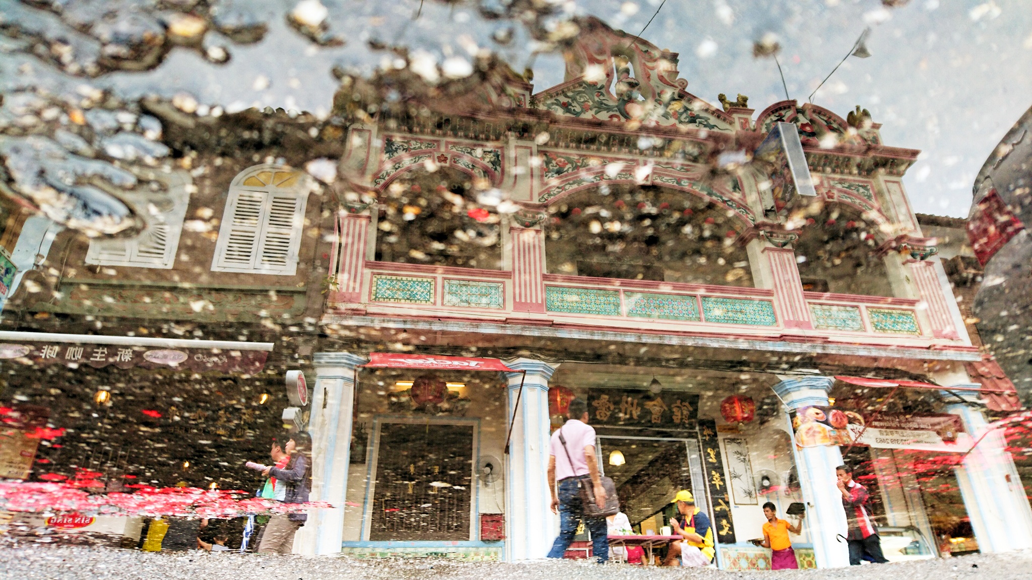 | Xperia Z5 trang bị ống kính dòng G, được xếp hạng tốt chỉ sau Carl Zeiss. Những lớp thấu kính này loại bỏ hầu hết những tia phản chiếu không cần thiết, giúp bức ảnh trong trẻo hơn. Ảnh chụp mặt nước ven đường trên một con phố cổ ở Melaka, Malaysia. |