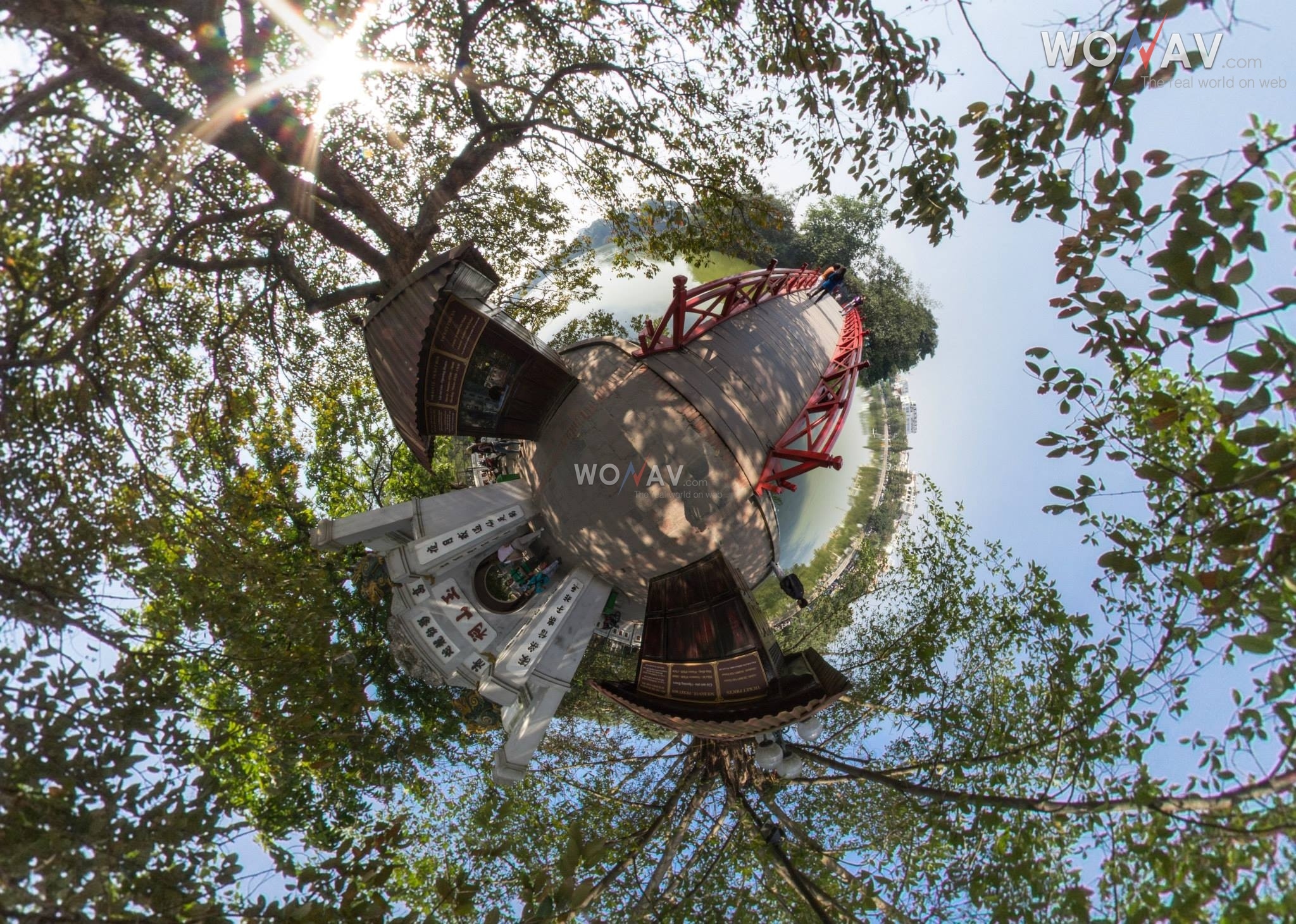 | Phạm Hoa Quỳnh, đại diện nhóm Wonav cho biết, để mang đến góc nhìn ấn tượng này, người chụp phải dùng ống chuyên nghiệp, ghi lại hình ảnh ở các mặt xung quanh trong cùng một điểm đứng, thời gian chụp khá nhanh nhưng phần hậu kỳ lại công phu nên tốn nhiều thời gian. Khoảng 3 tiếng mới cho ra đời tấm ảnh hoàn hảo với nhiều chi tiết bên trong. Hình ảnh được chụp tại cầu Thê Húc. |