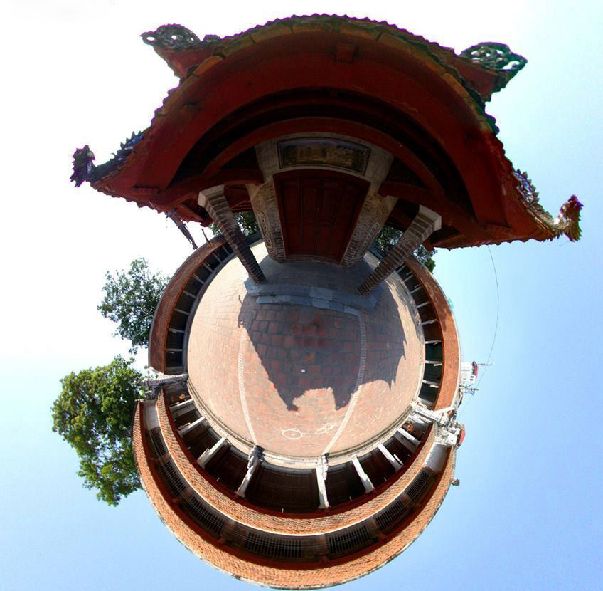 | Hoa Quỳnh chia sẻ, hầu hết các thành viên trong nhóm đều rất sáng tạo. Từ một lần chụp thô các mặt của một địa điểm, các thành viên trong nhóm có thể tự mình nghiên cứu và xuất ra nhiều dạng khác nhau, như ảnh 360 độ tương tác, ảnh Little Planet (thường là khổ vuông), hoặc tạo thành các banner thú vị. Hình ảnh được ghi lại tại chùa Láng, Hà Nội. |