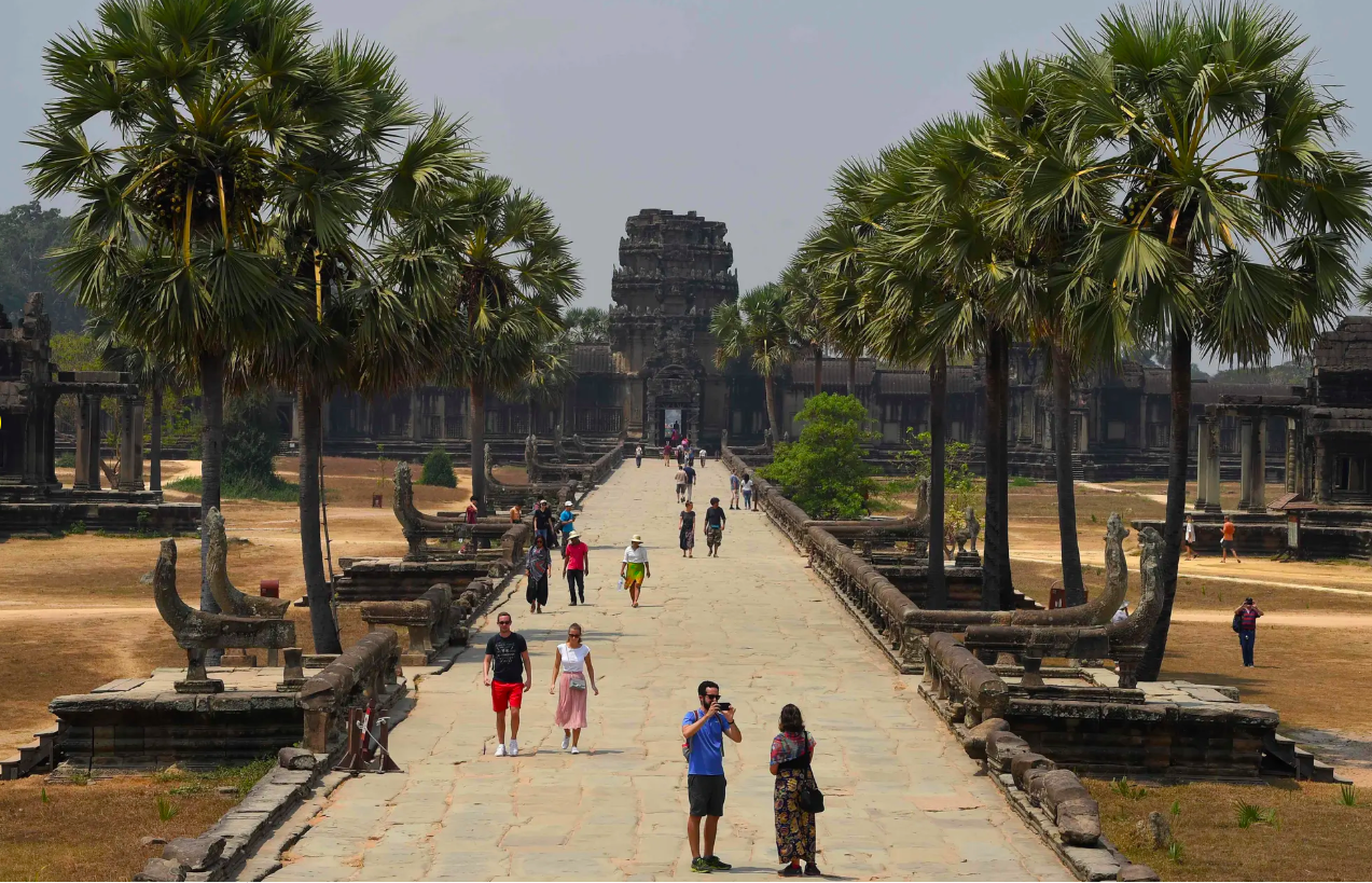 | Tổ chức Du lịch Thế giới cho biết lượng khách du lịch quốc tế khả năng giảm mạnh trong năm nay, đảo ngược dự báo trước đó về sự gia tăng đáng kể. Cơ quan Liên Hợp Quốc cho biết thay vì dự báo tăng trưởng 3-4% trước đó, lượng khách đến có thể giảm 1-3% trong năm 2020 với khoản lỗ du lịch quốc tế dự kiến 30 tỷ USD. Tỉnh Siem Reap là địa phương phát triển du lịch bậc nhất ở Campuchia với quần thể kinh đô cổ Angkor quy tụ những ngôi đền huyền bí. Trong đó, đền Angkor Wat được cho là biểu tượng của đất nước Campuchia, thu hút rất nhiều lượt khách ghé thăm mỗi năm. Khác với vẻ đông đúc du khách của một năm về trước, khung cảnh trước đền Angkor Wat vắng vẻ hơn. |