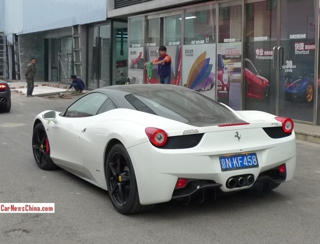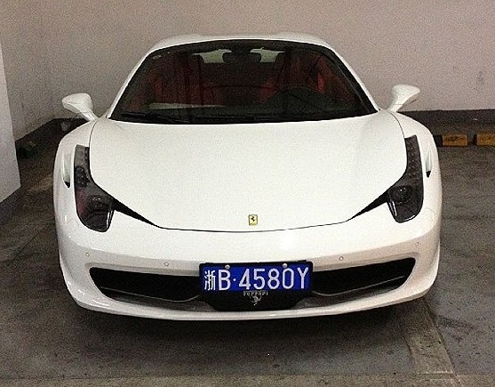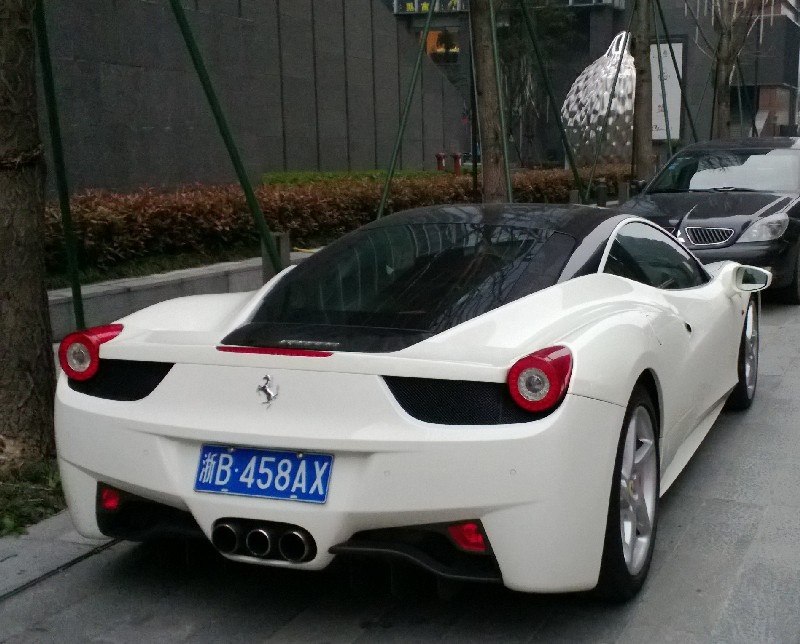 | Một chiếc Ferrari 458 màu trắng với biển số 458AX cũng ở Chiết Giang. |