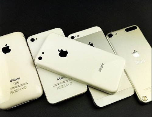 iPhone 5C phía trên, phía dưới là các mẫu iPhone đời trước.