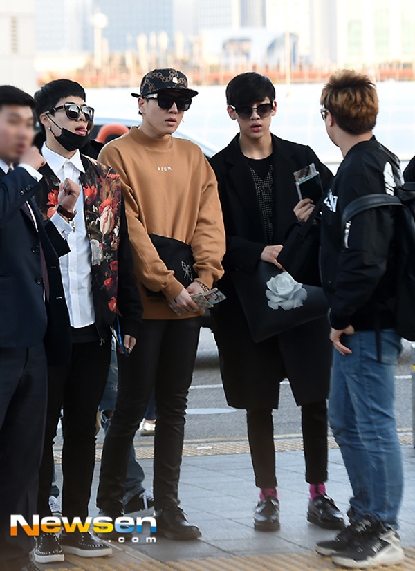 | Ngày 28/3, chương trình âm nhạc quy tụ các nhóm nhạc Hàn đình đám Music Bank sẽ diễn ra ở Hà Nội, Việt Nam. Chiều nay, các thành viên của GOT7, Block B, Teen Top đã ra sân bay để đến Việt Nam. Theo thông tin cộng đồng fan, 3 nhóm nhạc đáp chuyến bay lúc 17h20 và đến Hà Nội lúc 22h theo giờ Việt Nam. |