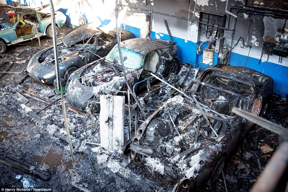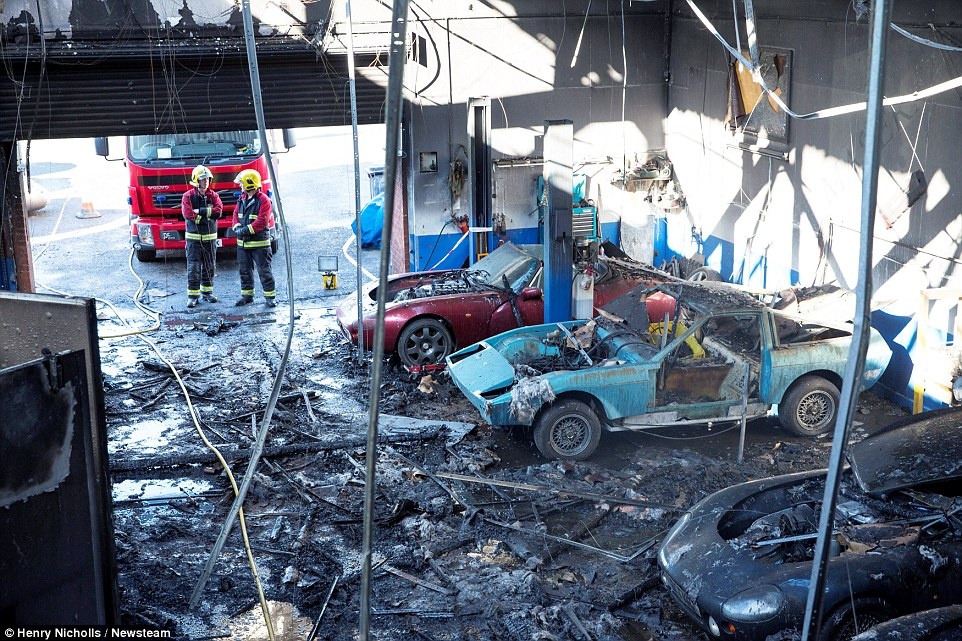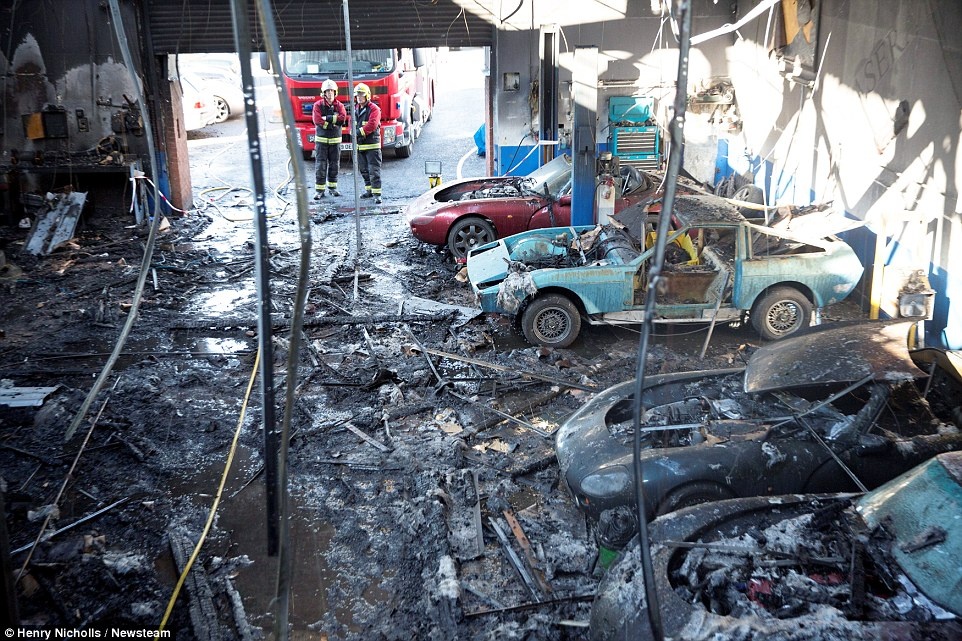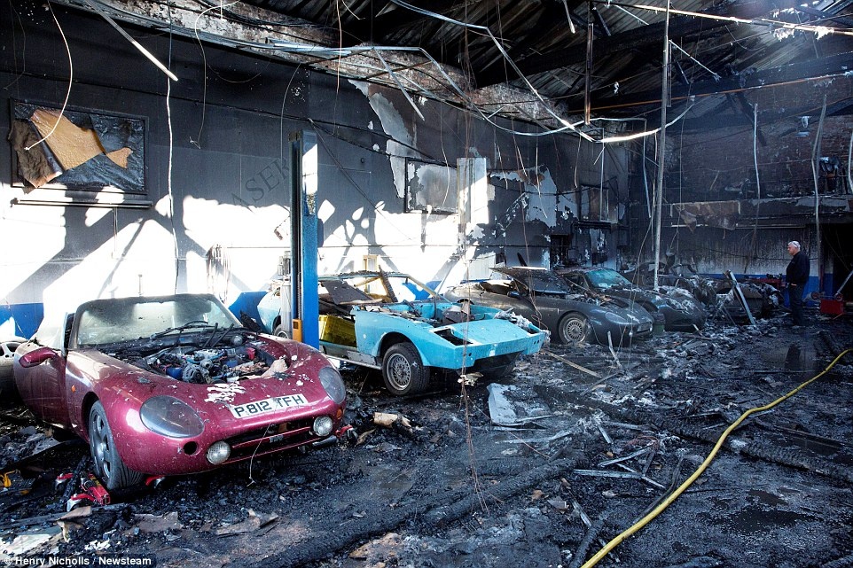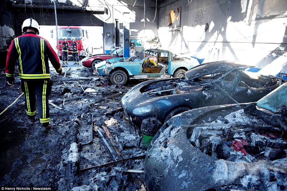 | Toàn bộ 10 siêu xe, trị giá gần một triệu USD bị phá hủy khi chúng nằm trong gara để chờ được sửa chữa. Lực lượng cứu hỏa còn cứu 8 siêu xe khác thoát khỏi đám cháy trong trung tâm. |