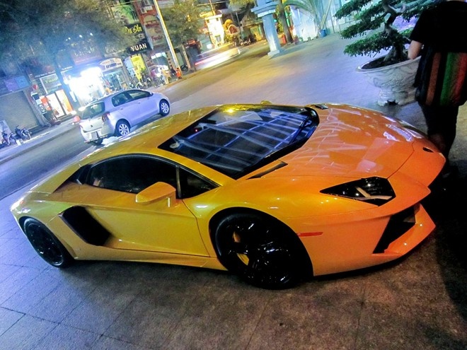 Chiều cuối năm, chiếc Lamborghini Aventador xuất hiện trước một quán bar trên đường Lê Thánh Tôn, quận 1, TP HCM. Đây là siêu xe Aventador đầu tiên tại Việt Nam. Chiếc xe này từng mang biển số ngoại giao nhưng đã thay biển trắng từ tháng 7/2014. Tại Việt Nam, mỗi chiếc Aventador mới và đóng đầy đủ thuế ra biển trắng có giá khoảng 26 tỷ đồng. |