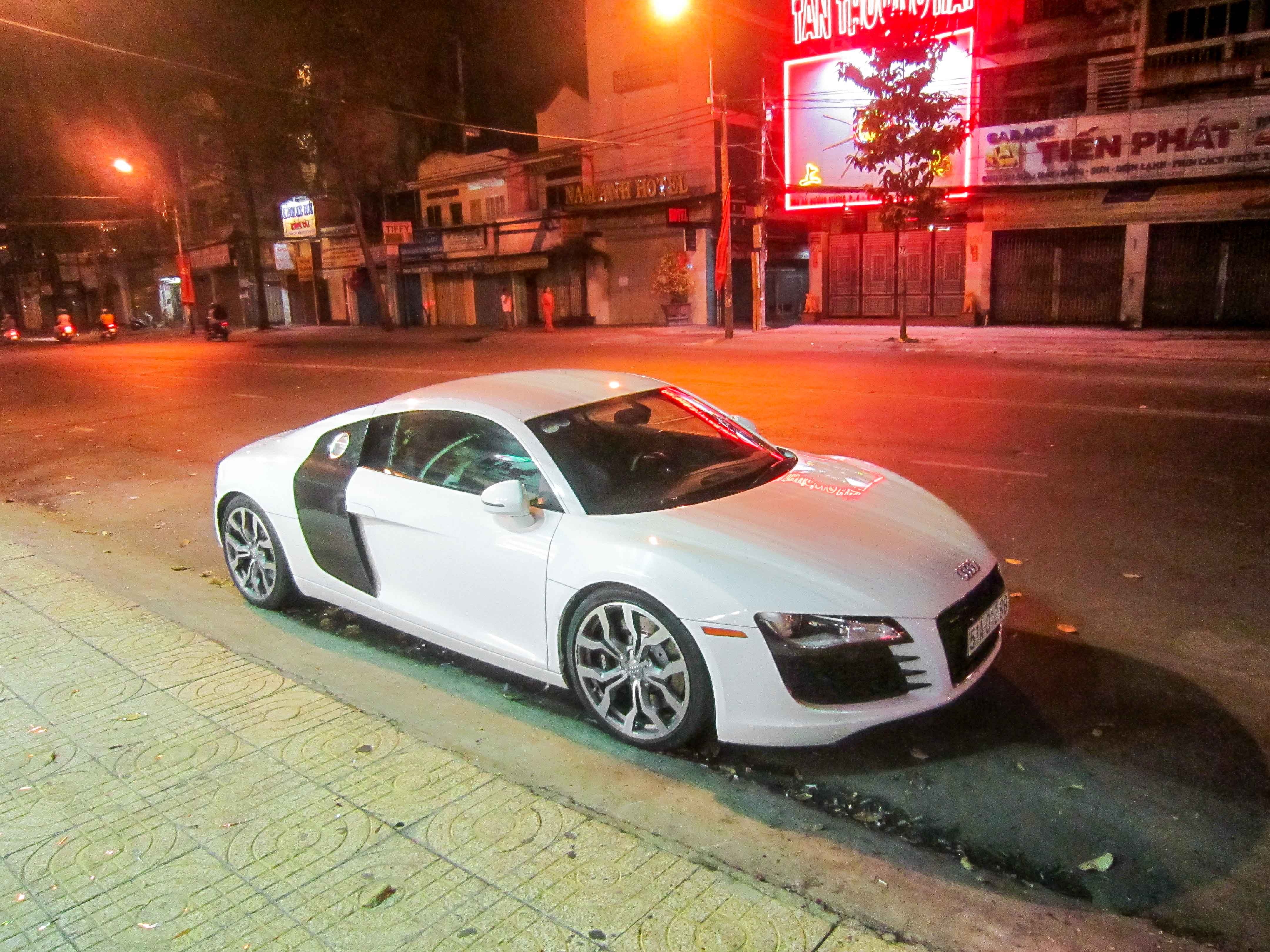Audi R8 là siêu xe "giá rẻ" được các đại gia Việt đặc biệt ưa chuộng. R8 có kiểu dáng mềm mại, hấp dẫn, dùng chung hệ khung sàn với siêu xe Lamborghini Gallardo. Xe được trang bị động cơ V8, phun xăng trực tiếp FSI, dung tích 4,2 lít, công suất 420 mã lực ở vòng tua khá cao 7.800 vòng/phút, mô-men xoắn cực đại 430 Nm ở khoảng 4.500 - 6.000 vòng/phút. Mức giá tại Mỹ từ 110.000 đến 180.000 USD tùy phiên bản. |