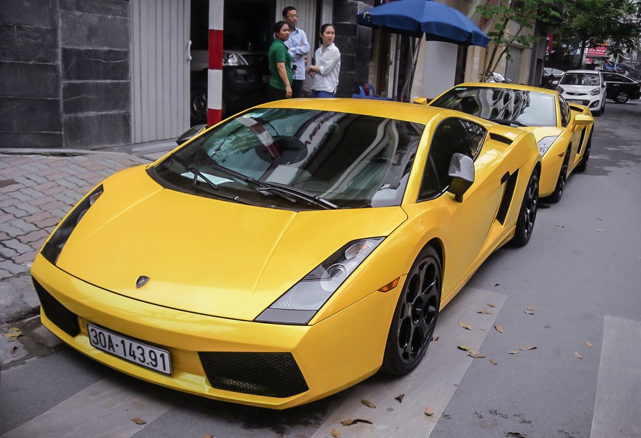 | Hai chiếc Gallardo trong hình thuộc sở hữu của một người chơi xe tại Hà Nội. Đại gia này nổi tiếng với thú chơi siêu xe theo cặp, với các cặp đôi Gallardo, Bentley Continental GT, Aston Martin Rapide. |