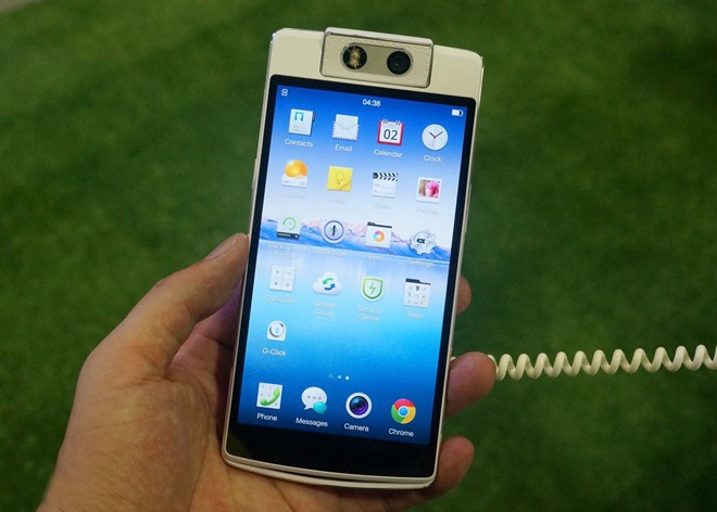 Chiếc smartphone camera tự xoay của Oppo vừa mới chính thức lên kệ, giá bán khá cao, ở mức 13,99 triệu đồng. Thiết kế của máy không khác quá nhiều so với N1, nhưng cụm camera 16 megapixel của máy có khả năng tự xoay độc đáo bậc nhất hiện nay. Trước đó, hãng này cũng đã cho bán ra chiếc R5 với độ mỏng chỉ 4,85 mm. |
