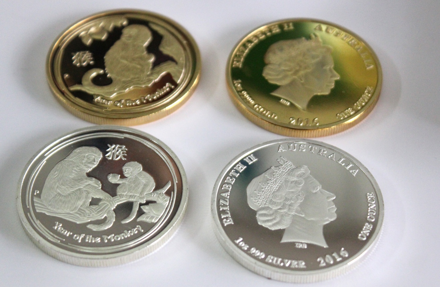 | Ngoài xu màu vàng, trên thị trường còn có cả xu bạc mặt sau có hình 2 chú khỉ. Loại tiền này có giá bán 200.000-300.000 đồng một xu. |