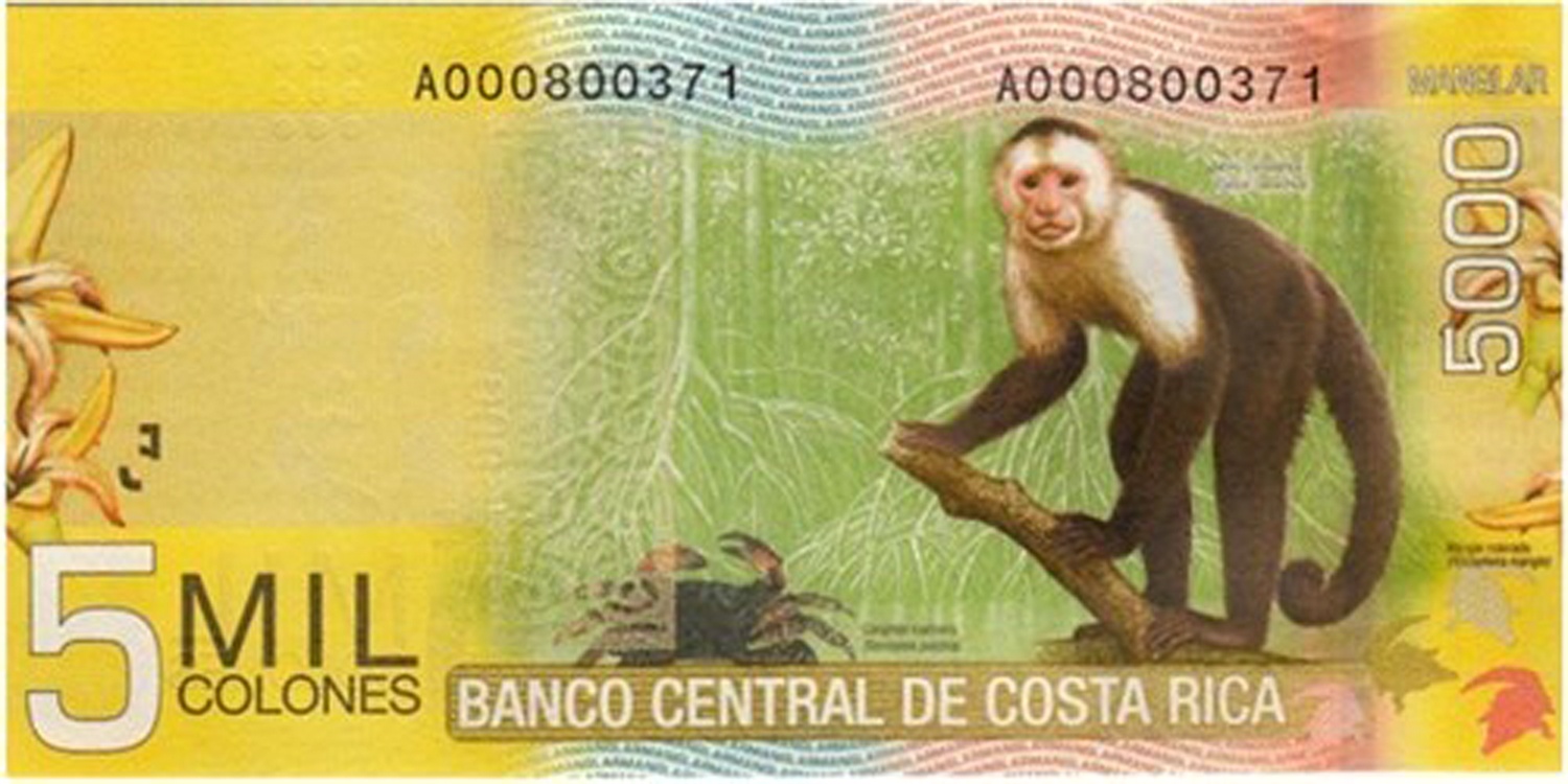 | Tiền con khỉ của Costa Rica mệnh giá 5.000 colon, được giới sưu tầm đánh giá là loại tiền lì xì có hình dáng và thiết kế đẹp nhất trong dịp Tết này. |