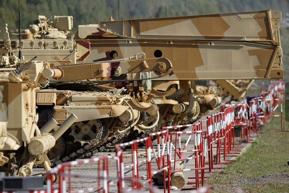 | Bãi tập trình diễn cho các phương tiện bọc thép của Nga đã hoàn tất khâu chuẩn bị cuối cùng. |