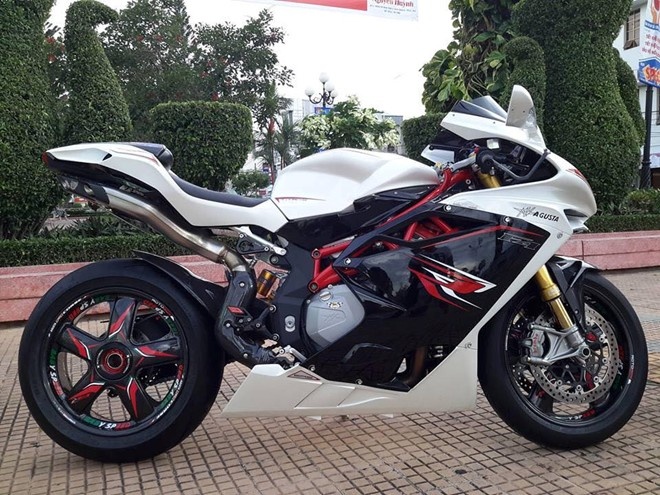 MV Agusta F4-RR ABS 2014 của một biker tại Long Xuyên được cho là đầu tiên và duy nhất tại Việt Nam. Chủ nhân của mẫu superbike này đã trang bị cho chiếc xe cặp vành Rotobox carbon, có giá khoảng 4.000 USD. Ngoài bộ vành xe đắt tiền, chiếc MV Agusta F4-RR ABS này còn được trang bị thêm những món đồ chơi khác như tay côn Brembo Billet, tay phanh Brembo Billet Moto GP Special, một số chi tiết làm từ sợi carbon... Ảnh: M-Racing Việt Nam.