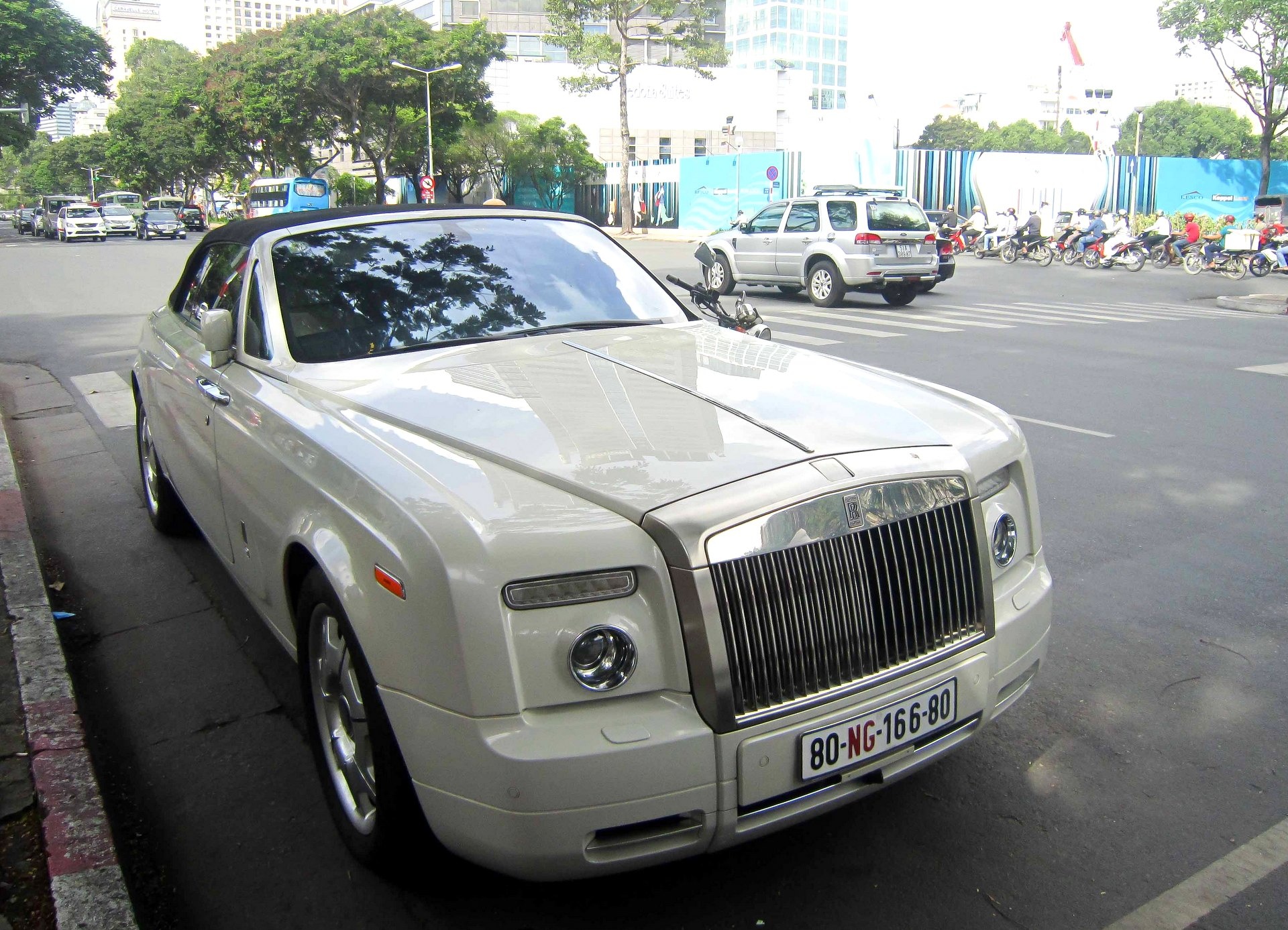 | Rolls-Royce Drophead Coupe màu trắng mang biển số ngoại giao. |