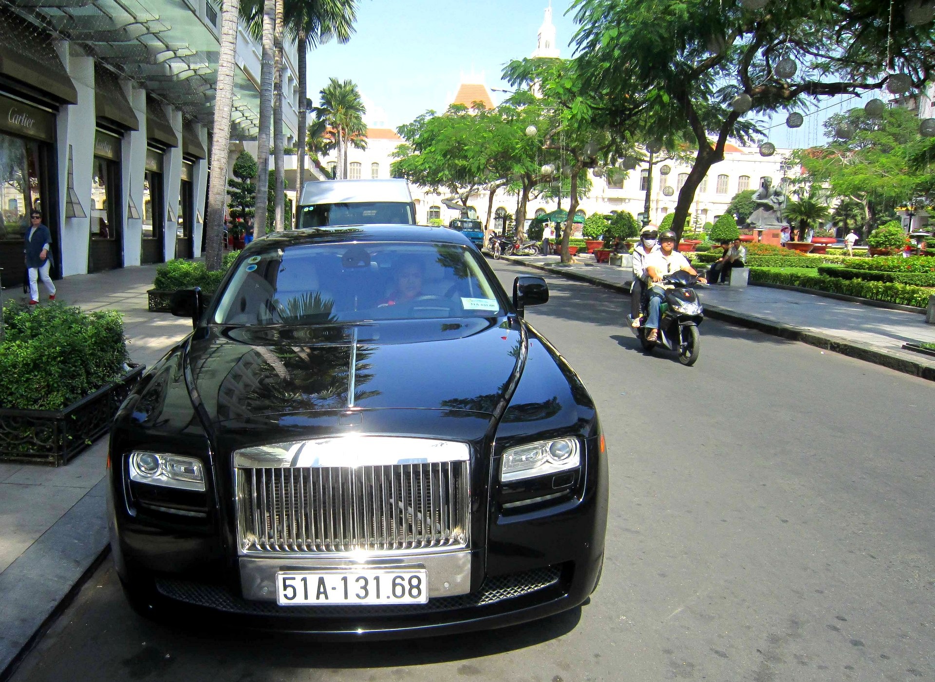 | Rolls-Royce Ghost đỗ cạnh khách sạn 5 sao trên đường Nguyễn Huệ. |