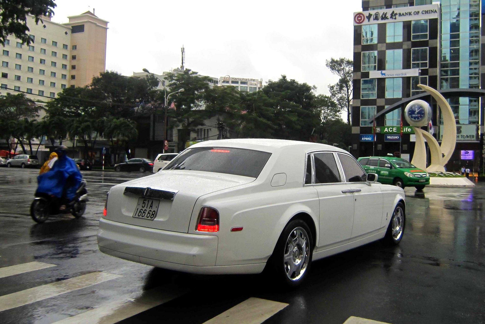 | Rolls-Royce Phantom rồng xuất hiện trước một khách sạn 5 sao ở trung tâm TP HCM. Đây là 1 trong số 5 chiếc Rolls-Royce Phantom rồng tại Việt Nam. Xe mang biển số ngũ quý 3, thuộc hàng khủng nhất Việt Nam. |