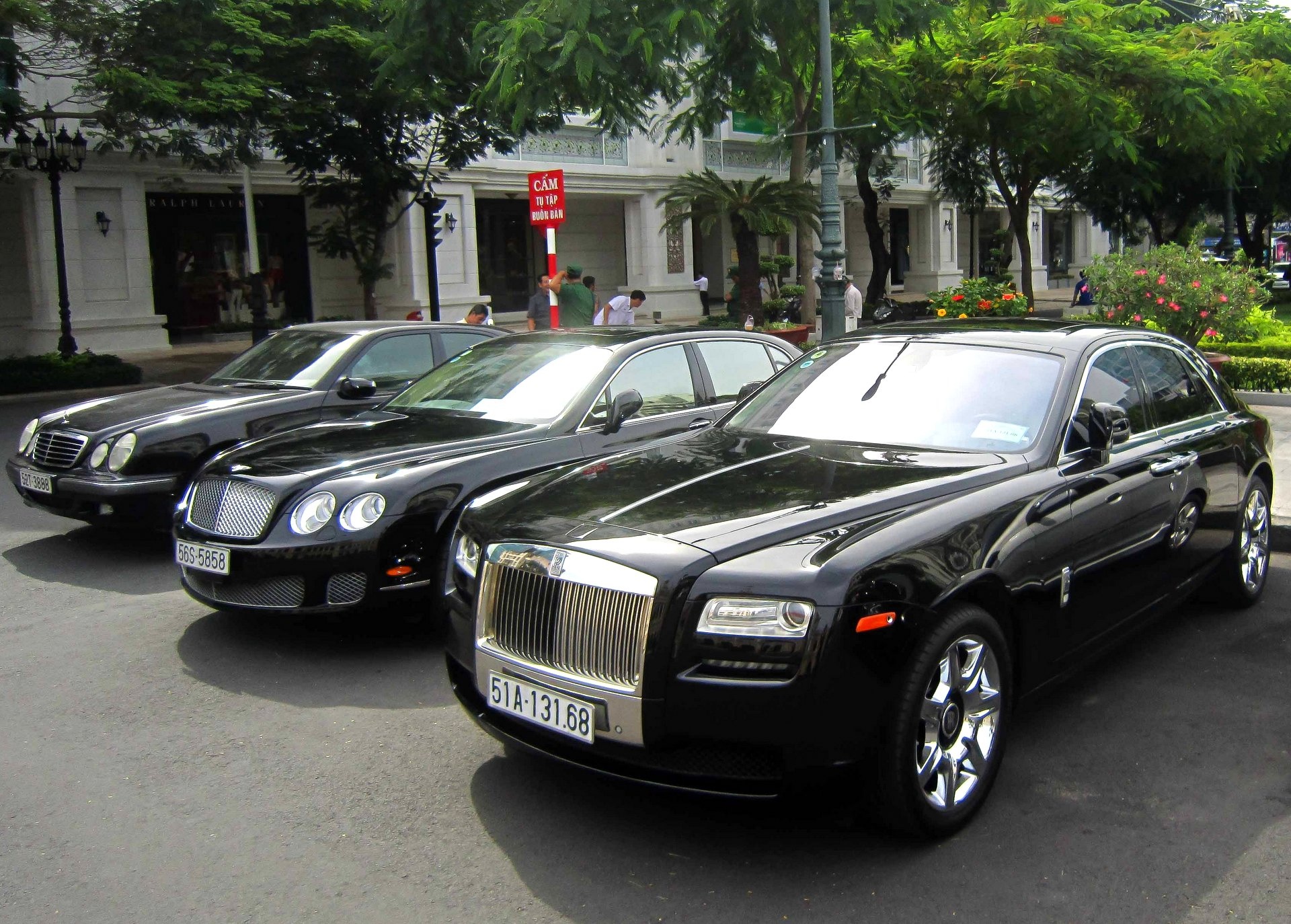 Rolls-Royce, Maybach, Bentley, Mercedes là những chiếc xe siêu sang có trị giá hàng triệu đô, thường xuất hiện ở trung tâm Sài Gòn.