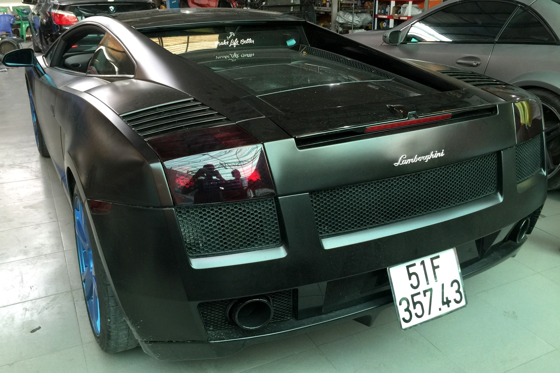 | Cuối cùng là chiếc Lambornghini Gallardo SE độc nhất Việt Nam được đổi từ màu vàng sang đen mờ. |