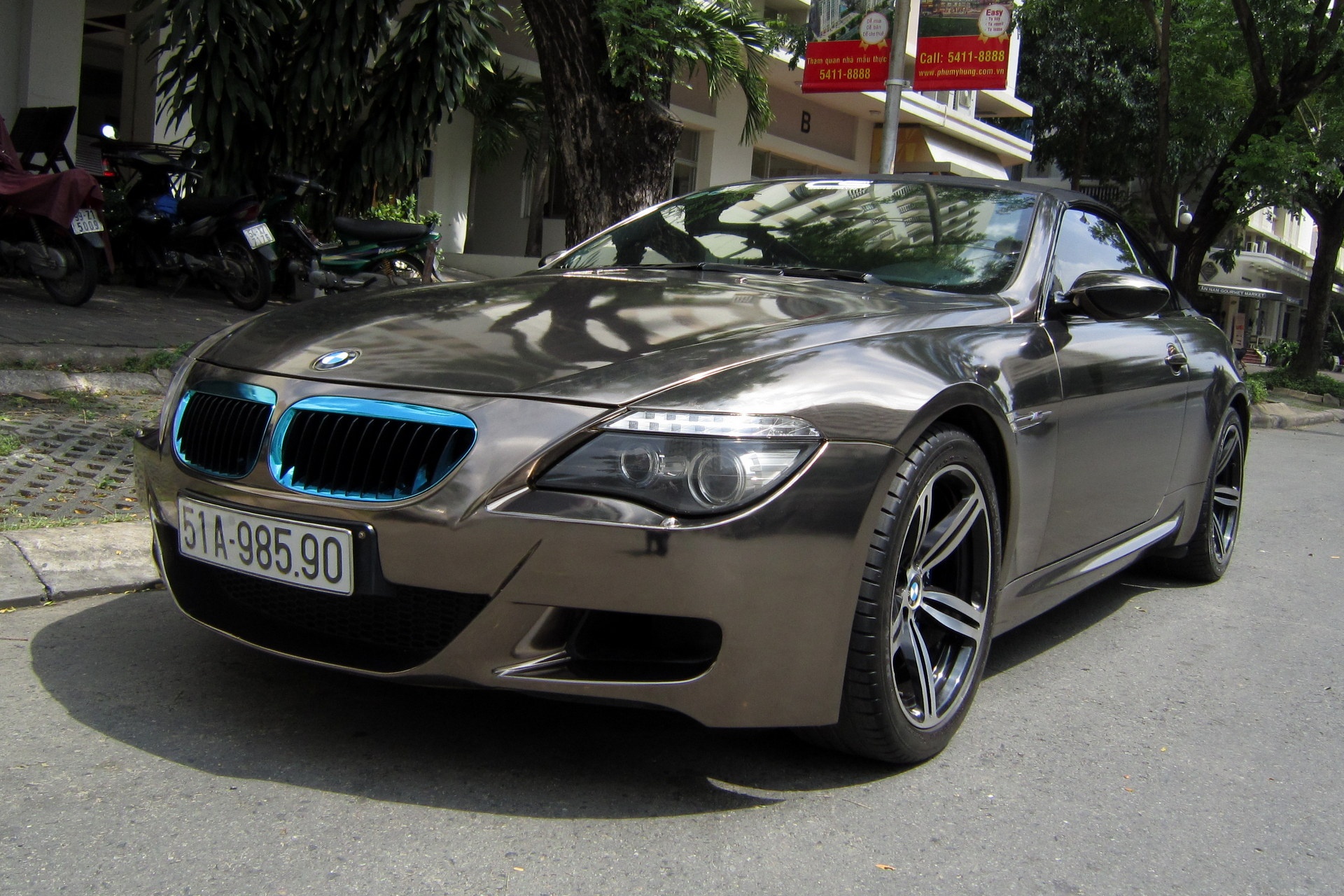 | BMW M6 convertible trước đây mang màu vàng/xanh. Với lớp wrap màu chrome xám, xe trở nên khác lạ và không đụng hàng. |