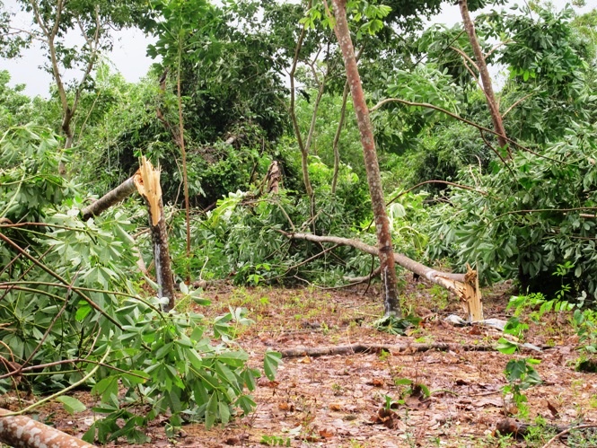 Trong khi đó, gia đình chị Ngô Thị Hương ở tiểu khu 8 bị hư hỏng hàng trăm gốc cao su.