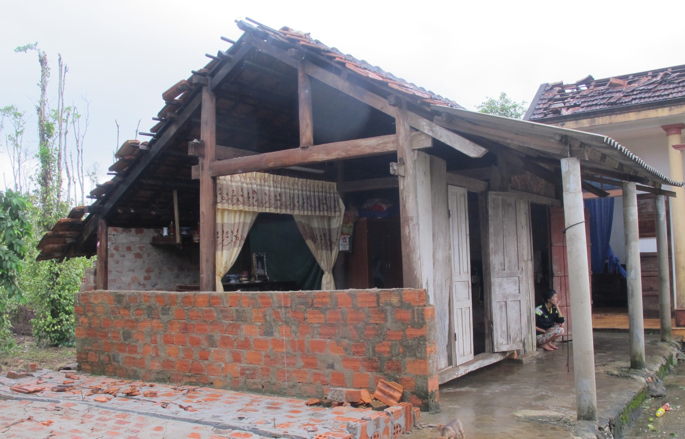 Ông Trương Minh Tuệ (ở tiểu khu Thống Nhất) cho biết, gần sáng cả gia đình bị đánh thức bởi những tiếng động ầm ầm. "Cả nhà vừa dậy thì gió mạnh thổi bay mái ngói ngôi nhà. Chúng tôi phải chui xuống gầm giường để tránh", ông Tuệ kể.