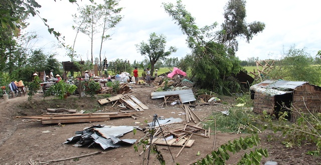 | Lốc xoáy đã làm sập hoàn toàn và tốc mái hàng trăm căn nhà ở huyện Tháp Mười. |