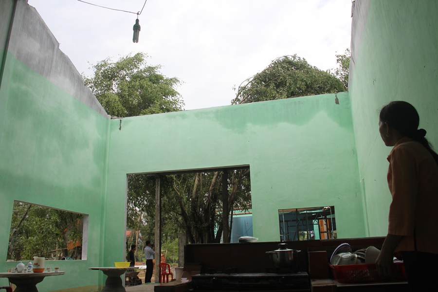 "Hoảng hốt, tôi và vợ con chạy vào gian nhà phía trong để ẩn nấp. Liền sau đó, toàn bộ mái hiên vừa lợp khoảng 40m2 bị lốc cuốn bay. Sống tại đây mấy chục năm nay, chưa bao giờ thấy xảy ra lốc xoáy, mưa đá kinh hoàng như vừa rồi”, ông Huynh nói tiếp.