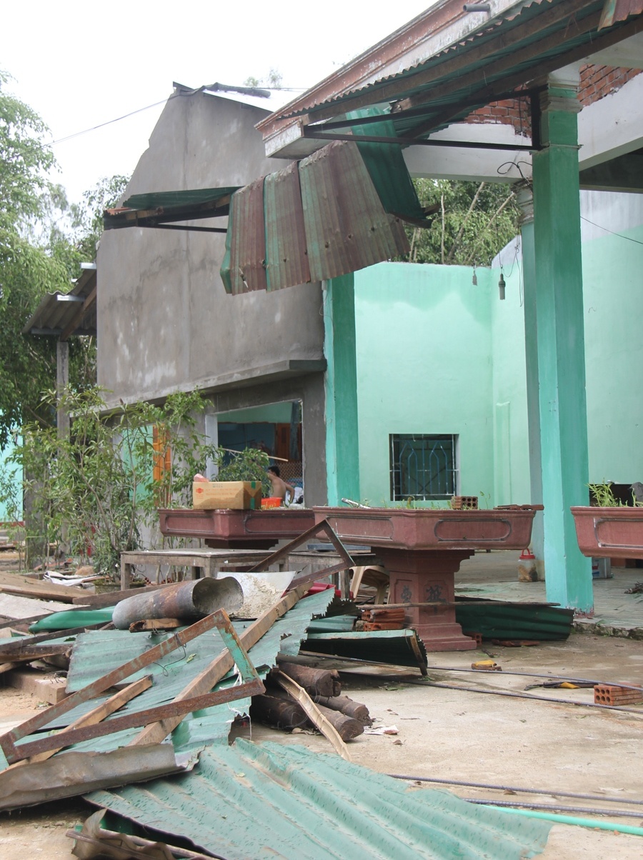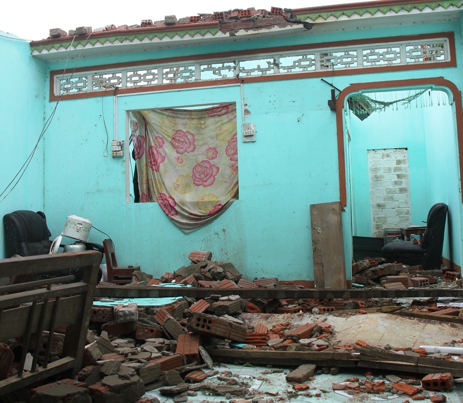 Một căn nhà bị tốc mái, mảng tường bị đổ sập.