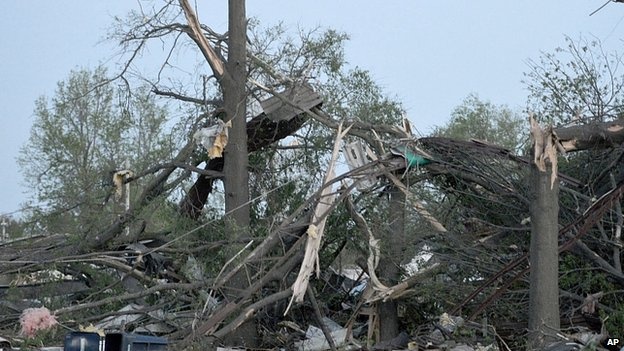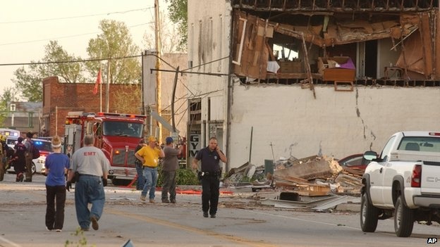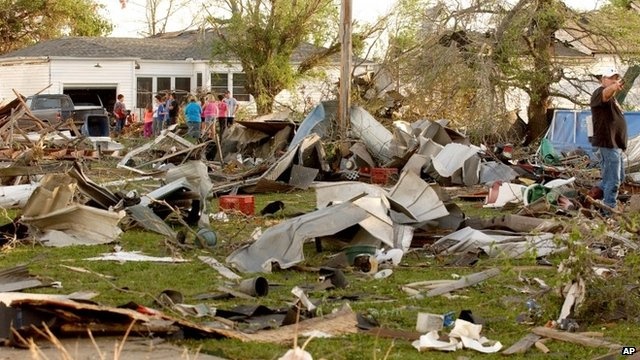 Lốc xoáy làm hư hại nhiều tòa nhà ở Quapaw - thị trấn có dân số 900 người. Thiên tai tương tự cũng xảy ra ở các bang Nebraska, Kansas, Iowa và Missouri. |