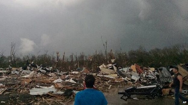 Theo một nhân chứng ở Mayflowe, cột lốc có đường kính 800 m đổ bộ khu vực này vào đêm 27/4 theo giờ địa phương. Gió mạnh quật ngã những cây lớn, lật ngửa nhiều ô tô. |
