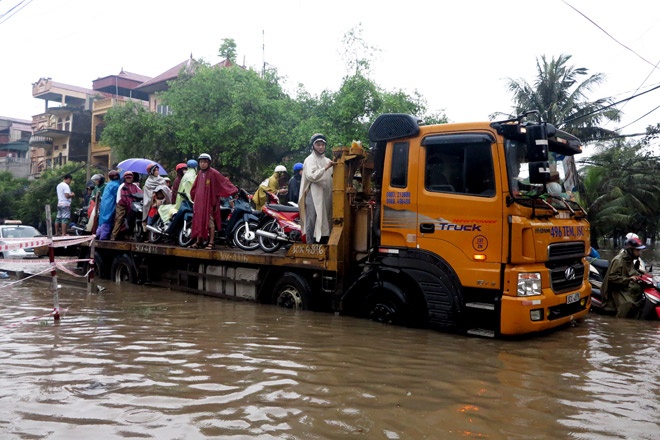 Nhiều người cố gắng băng qua để kịp giờ làm buổi sáng đều bị chết máy xe. |