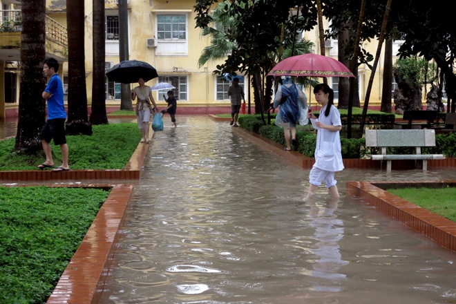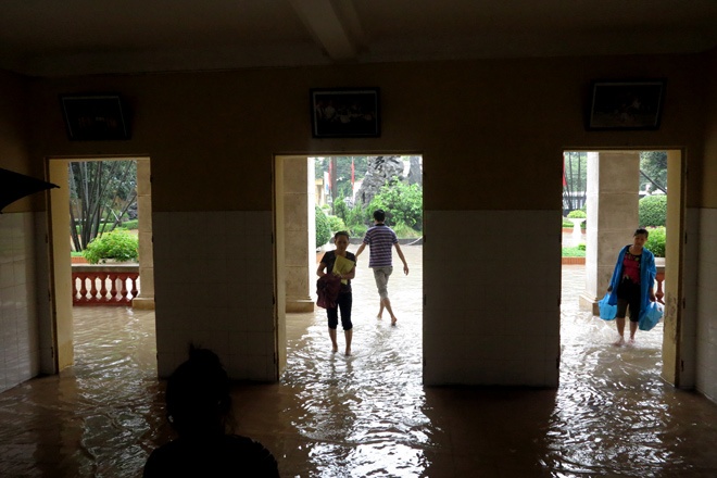 Nhưng bên trong nhà khu vực điều trị thì vẫn phải lội bì bõm |