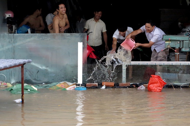 Nước ngập vào trong nhà cao tới trên 20cm. |