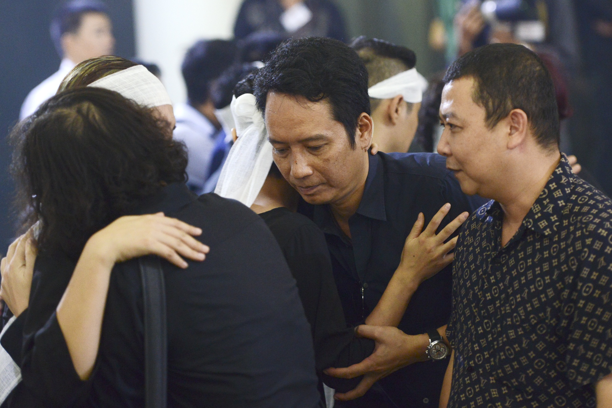 Khi những câu hát của Ca dao em và tôi vang lên trong giờ phút truy điệu cũng là lúc những người thân oà lên nức nở. Nước mắt biết bao người đã tuôn rơi để tiễn đưa người nghệ sĩ. Là chỗ dựa của mẹ và em gái song lúc này An Hiếu - con trai người nghệ sĩ - cũng không giữ được bình tĩnh.