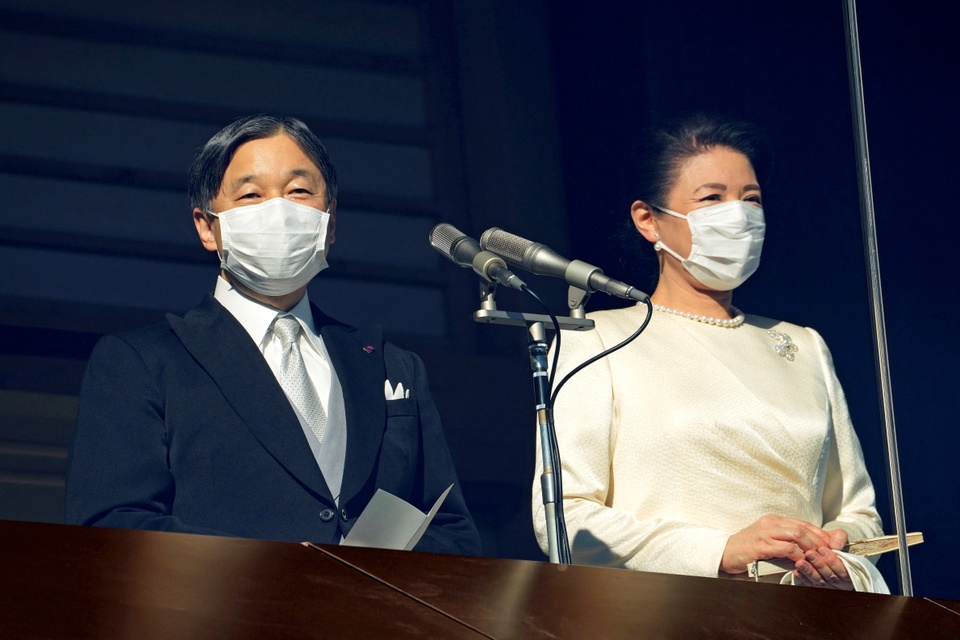 Nhật hoàng Naruhito cùng Hoàng hậu Masako có bài phát biểu năm mới trước công chúng lần đầu sau 3 năm. Ảnh: Reuters. |