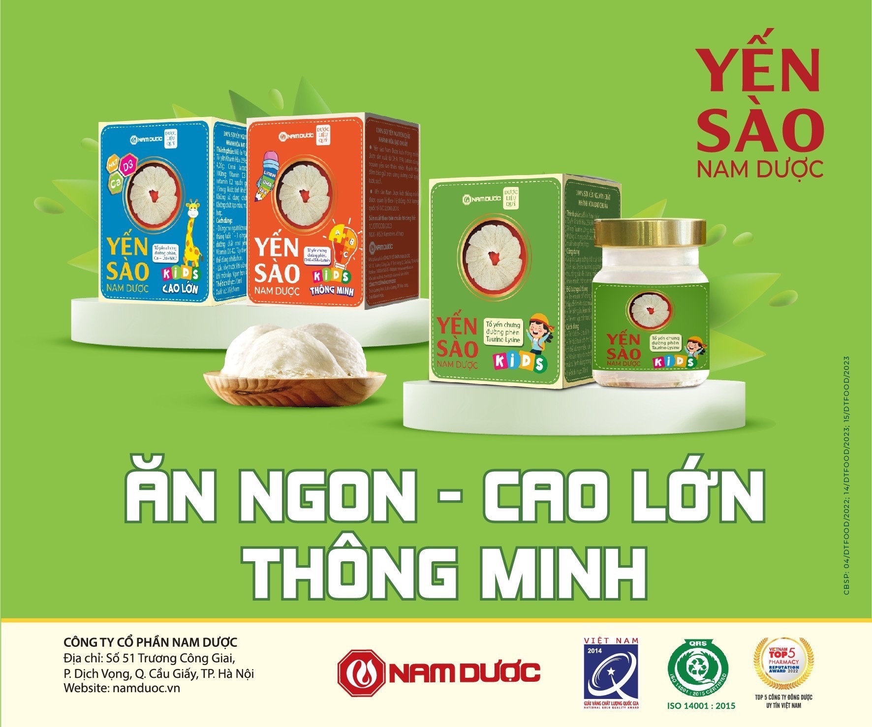 Trong đó, bậc phụ huynh có thể tham khảo Yến sào Nam Dược của Công ty Cổ phần Nam Dược. Sản phẩm sử dụng 100% sợi yến nguyên chất Khánh Hòa đạt chuẩn. Quá trình nghiên cứu, sản xuất luôn chú trọng 3 chuẩn gồm nguồn yến, dược liệu quý và quy trình.