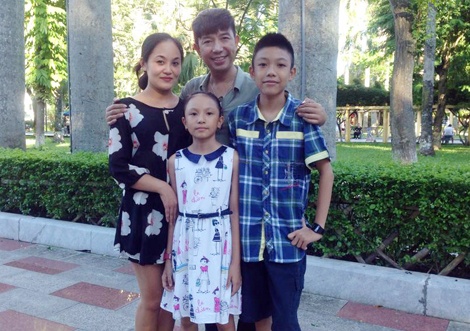 Long Nhật cùng vợ và các con. |