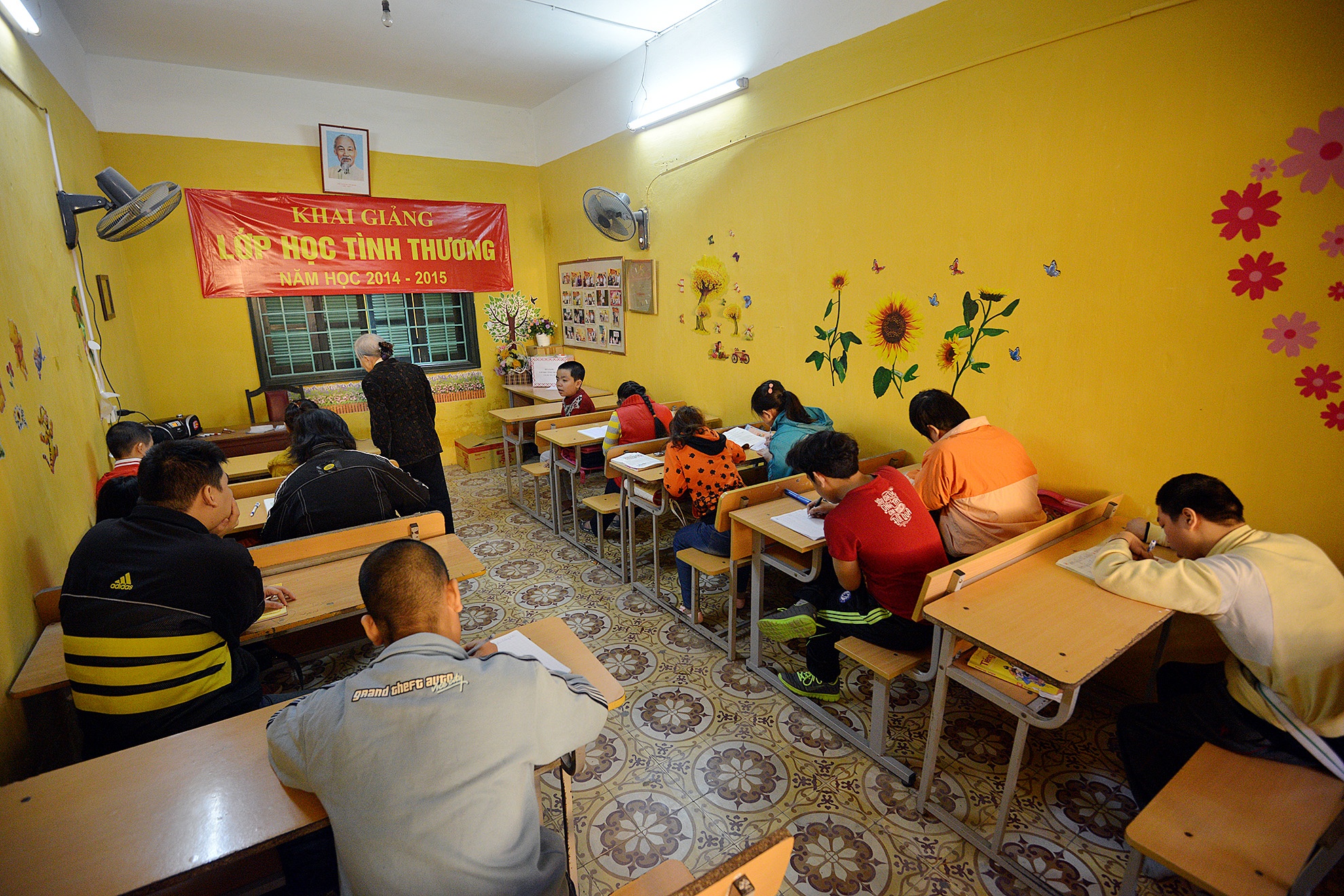 | Dạy các trẻ bình thường đã khó khăn, dạy trẻ bị down, thiểu năng trí tuệ, câm điếc... như ở đây còn vất vả hơn nhiều. Tuy nhiên do tình thương quá lớn với các em, bà đã vượt qua tất cả. "Đến khi nào tôi không đi, không nói được nữa mới ngừng dạy học", bà Nam tâm sự. |
