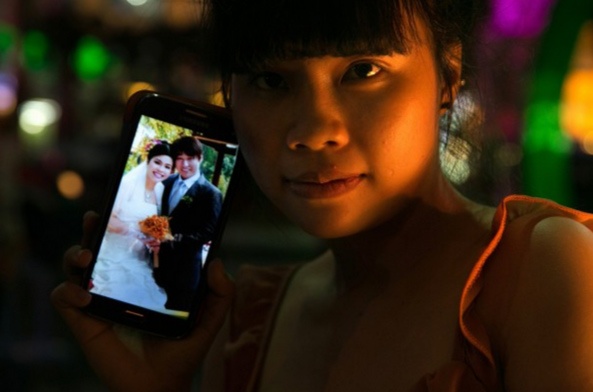 Danh Thi Cam Loan, một cô dâu Việt, lắng nghe giáo viên hướng dẫn ở lớp học đặc biệt tại TP. Hồ Chí Minh. Thiếu nữ 20 tuổi chấp nhận kết hôn với người chồng Hàn Quốc hơn 16 tuổi thông qua dịch vụ mai mối. Lee Kwan Ju, chồng Loan, làm quản lý một quán cà phê Internet ở Hàn Quốc. Anh ta phải chi hàng ngàn USD để bay từ Hàn Quốc tới TP. Hồ Chí Minh. |