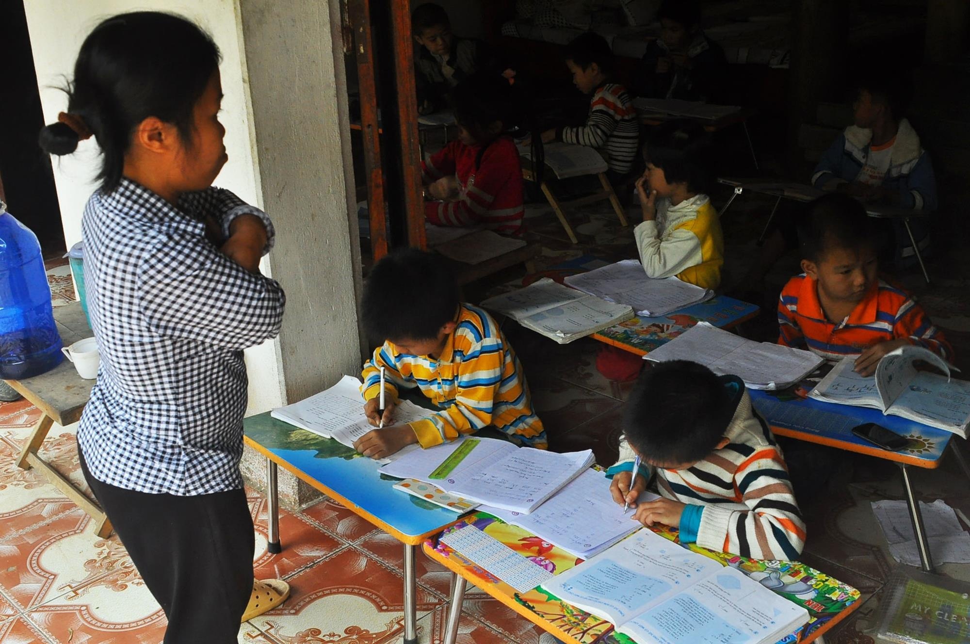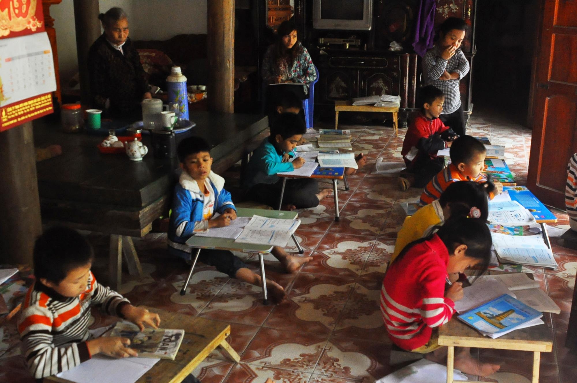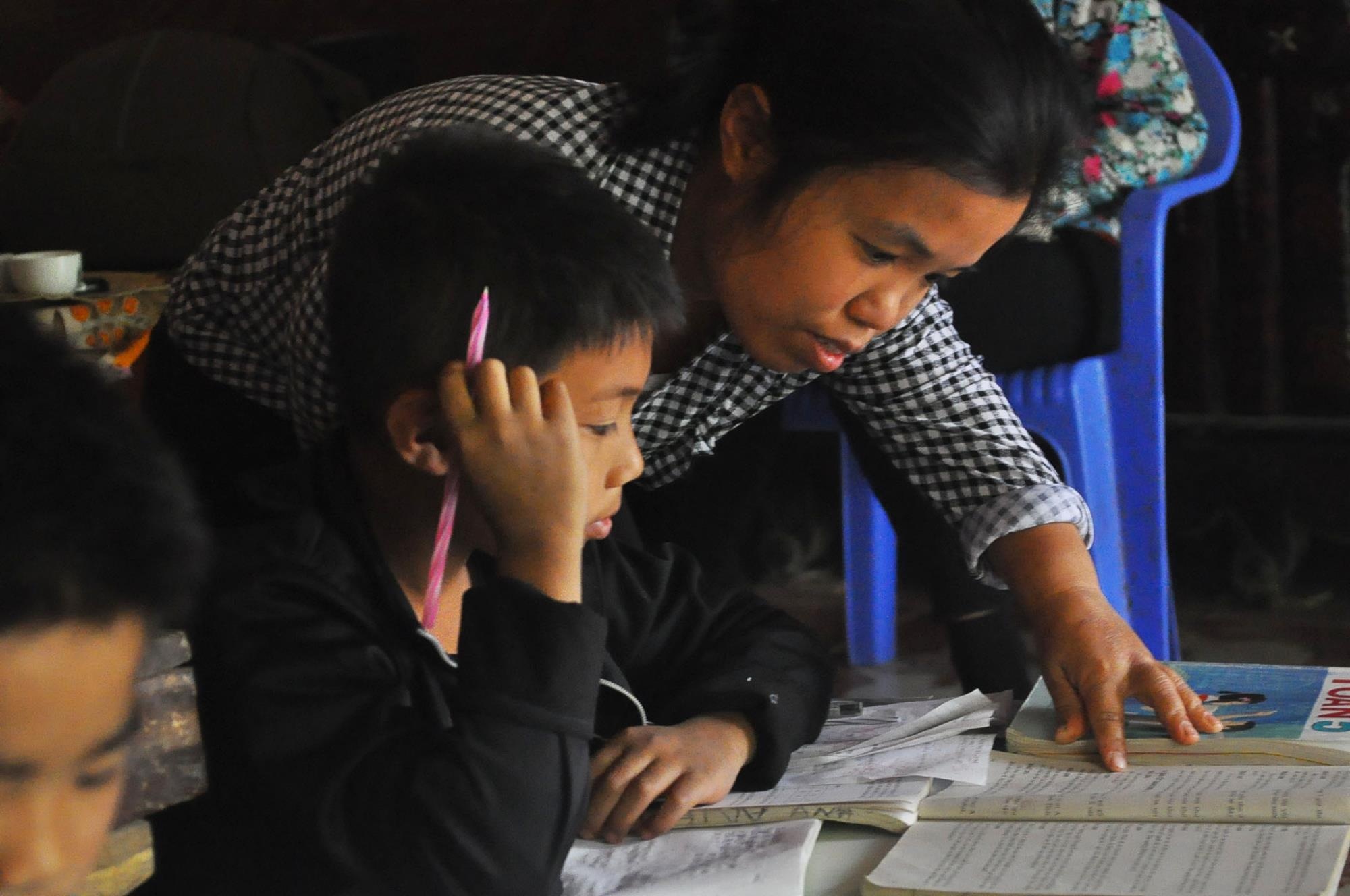 | Sau giờ học ở trường, nhiều phụ huynh trong thôn muốn gửi con nhờ cô Đạm dạy thêm. |