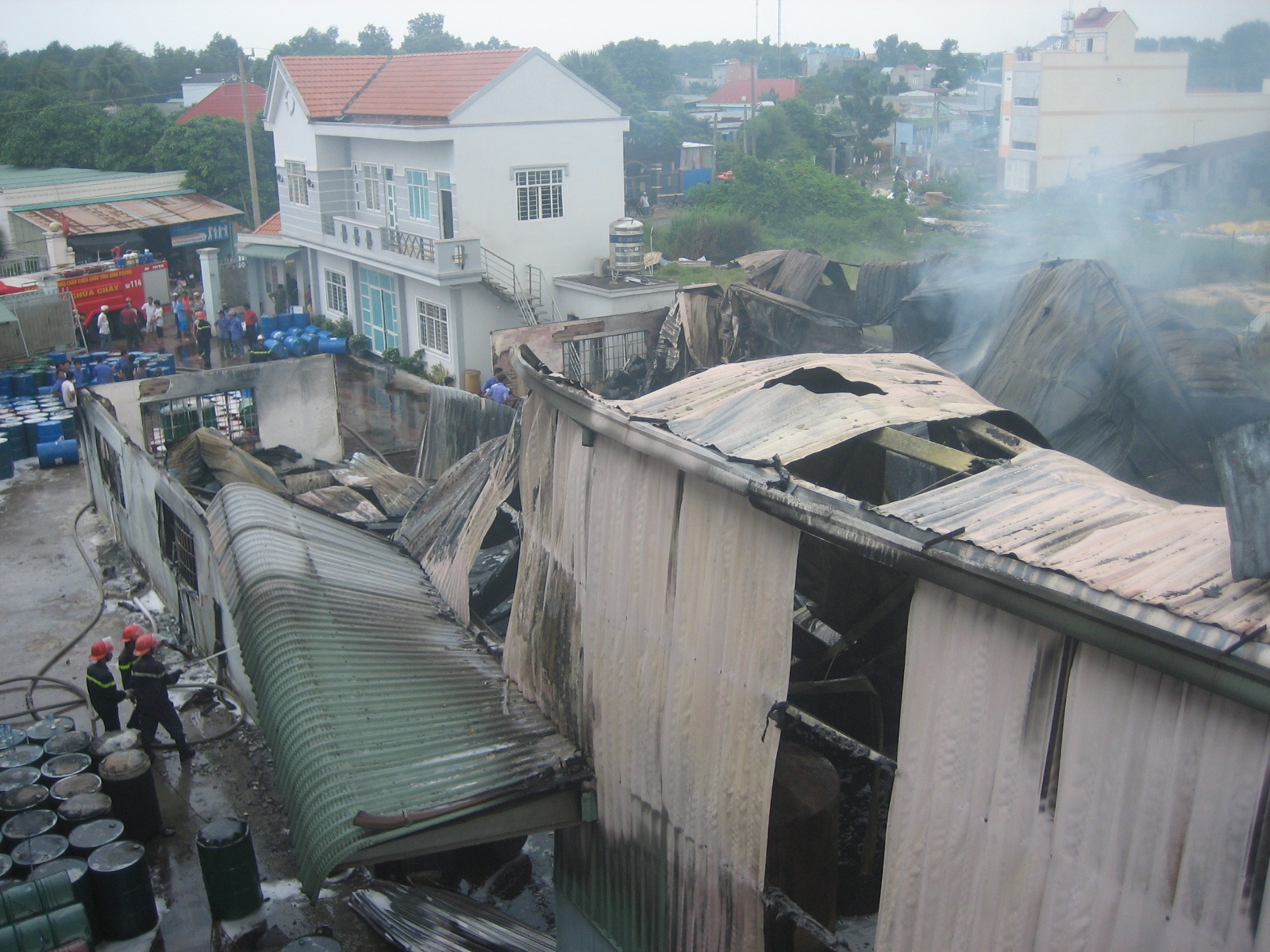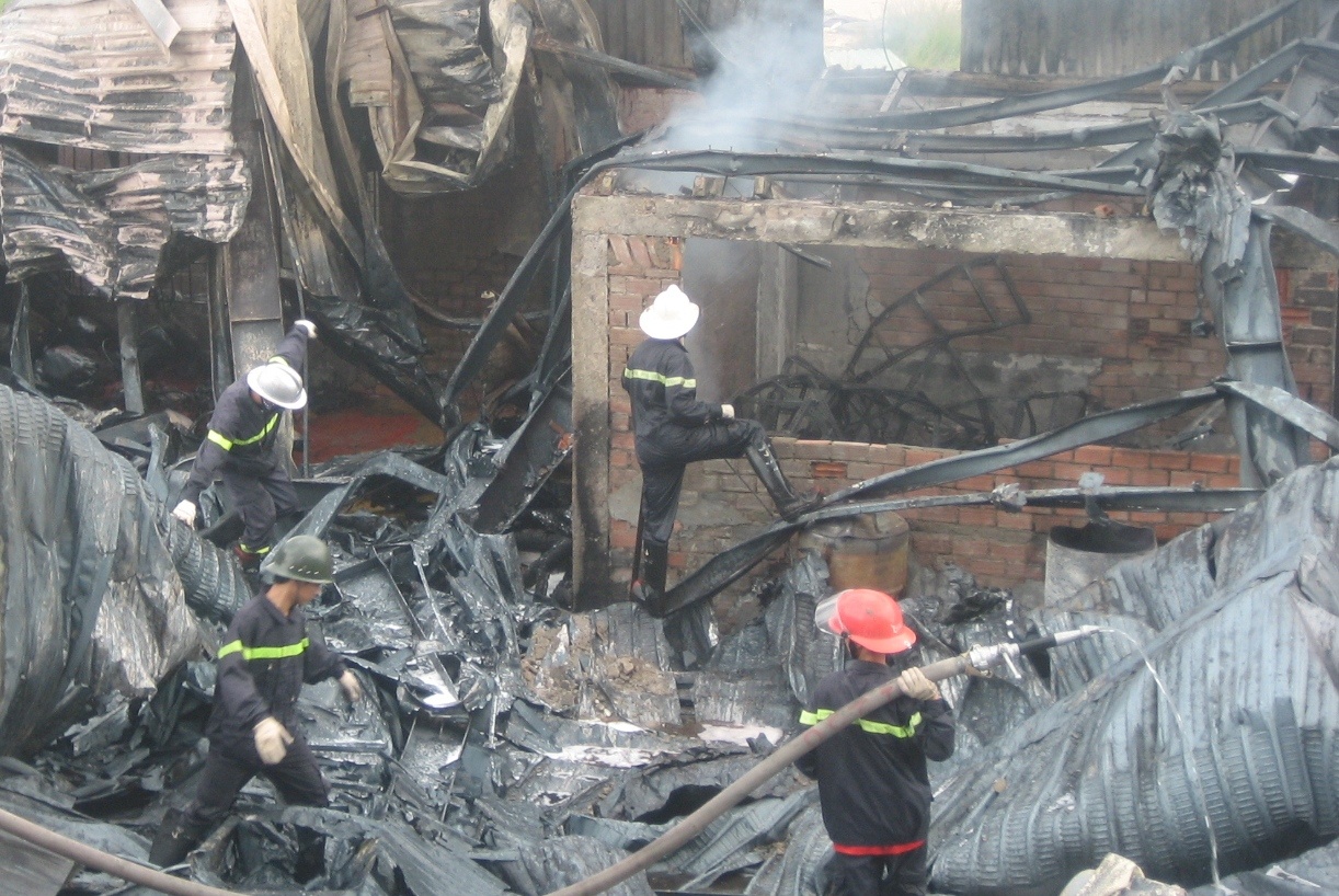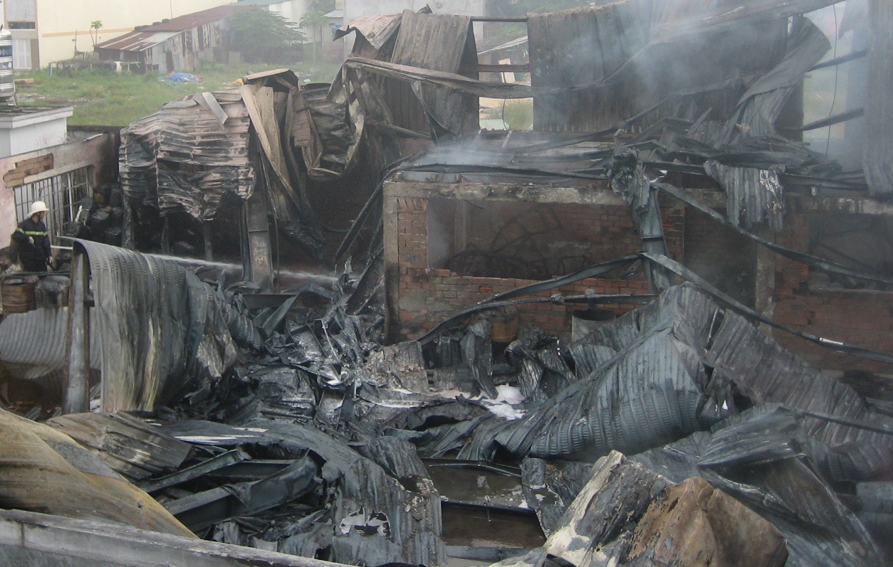 | Toàn bộ khu vực nhà xưởng bị cháy rụi. |