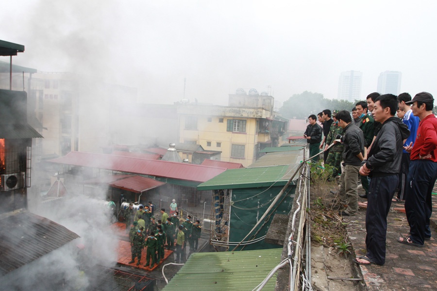 Tiểu đoàn thông tin 610, bộ tư lệnh thủ đô, đóng ngay sát tòa nhà, đã huy động 100 chiến sĩ tham gia cứu hỏa.