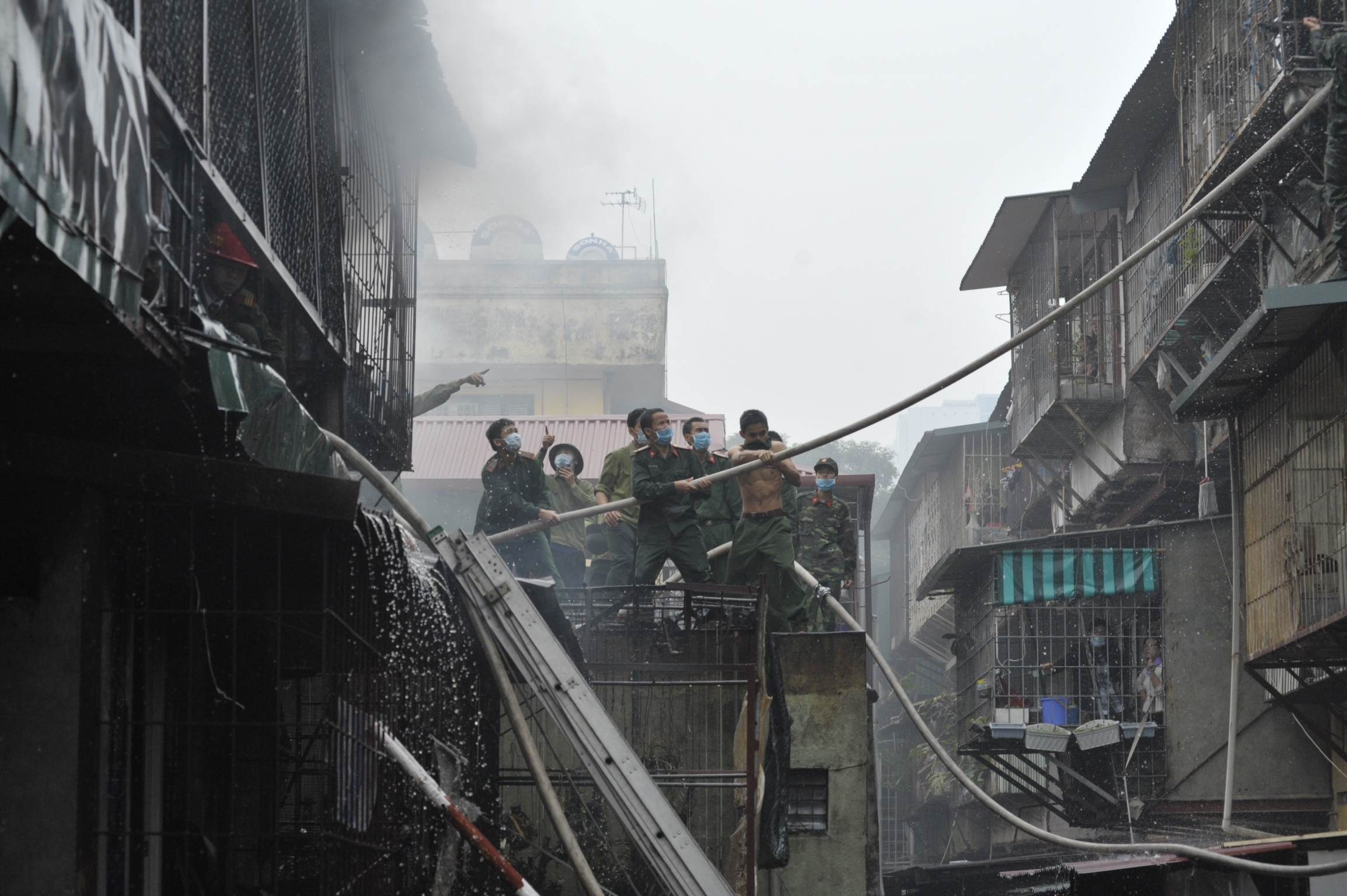 4 xe cứu hoả đã đến hiện trường nhưng do ngõ vào khu tập thể quá nhỏ nên việc cứu hộ gặp nhiều khó khăn.