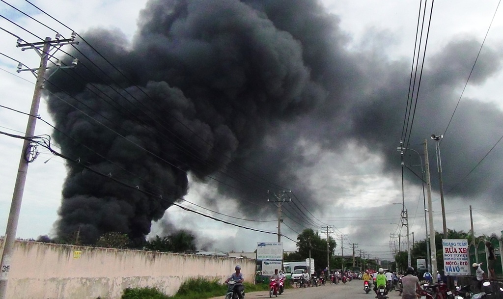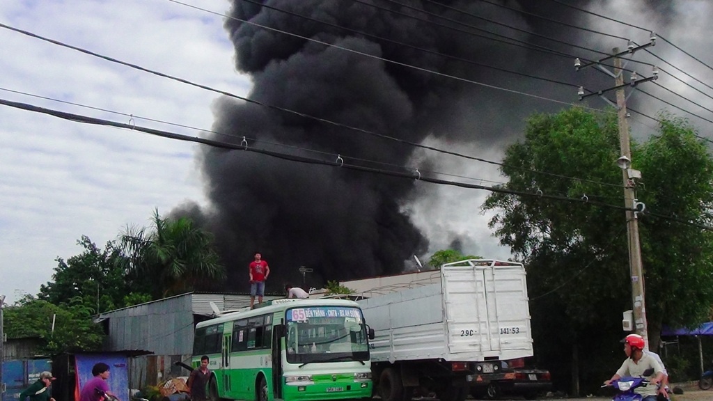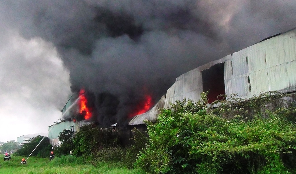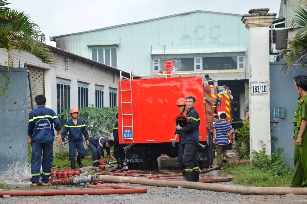 | Vụ hoả hoạn xảy ra tại công ty Minh Nguyên Phát - chuyên sản xuất đế dép, trụ sở tại xã Tân Hiệp, huyện Hóc Môn, TP.HCM. |