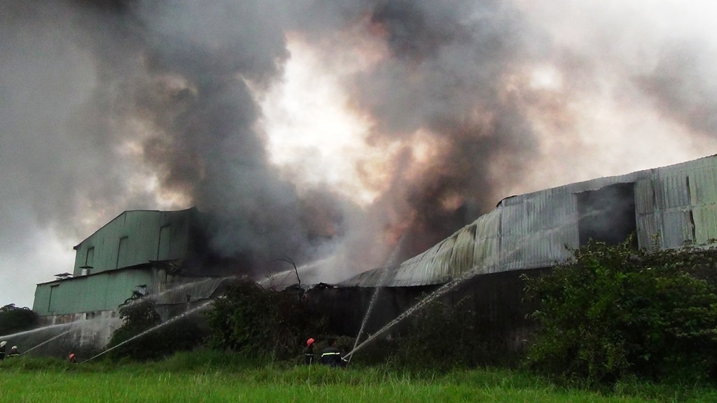 Vụ hoả hoạn đã làm đổ sập hàng trăm m2 nhà xưởng và thiêu rụi nhiều tài sản, nguyên liệu sản xuất, máy móc của công ty Nguyên Minh Phát.