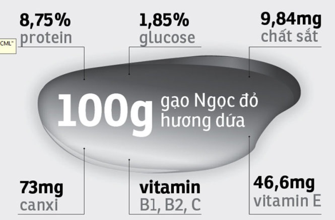 Kết quả phân tích tại Trung tâm Dịch vụ và phân tích thí nghiệm TP HCM và ĐH Cần Thơ cho thấy, các chỉ tiêu dinh dưỡng của loại gạo này đều vượt trội so với gạo trắng cao cấp Jasmine.