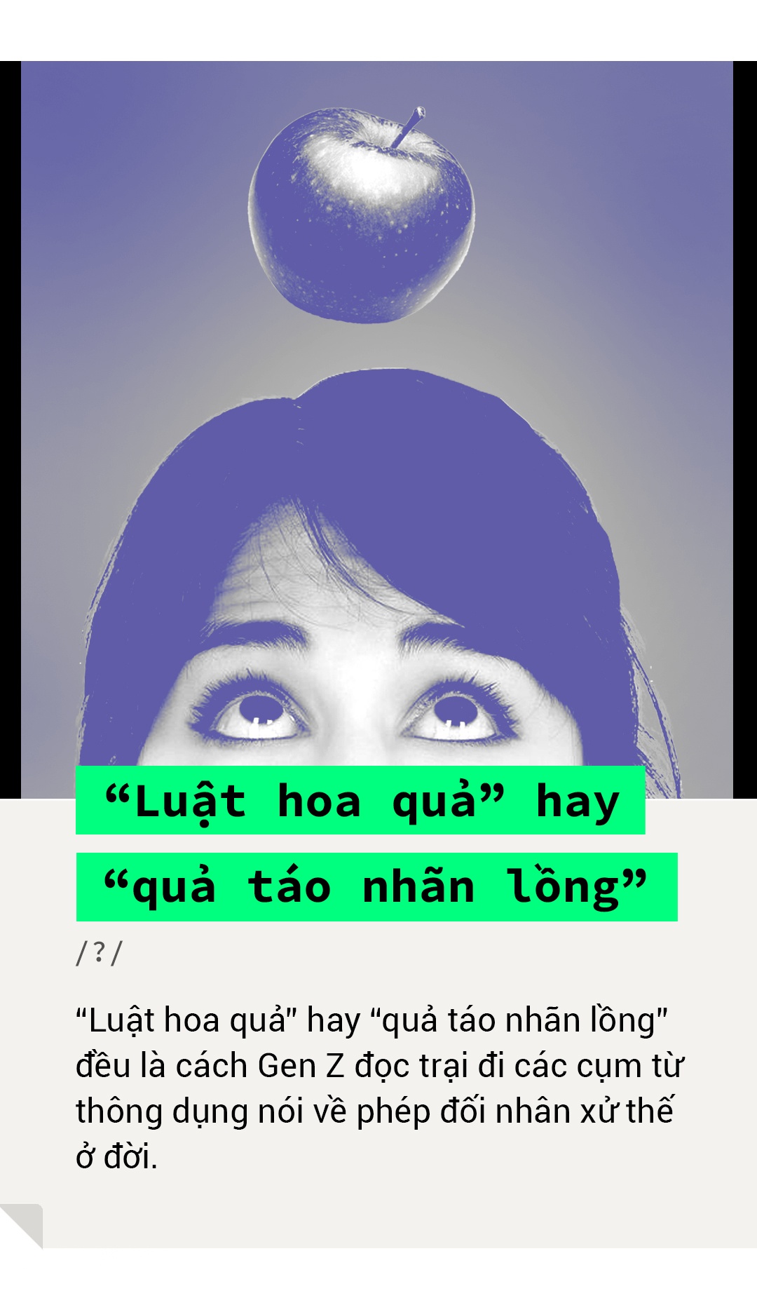 Sự xuất hiện của "luật hoa quả" hay "quả báo nhãn lồng" phần nào giúp làm giảm nhẹ mức độ nghiêm trọng trong các cuộc tranh luận thường ngày của Gen Z. Chúng chủ yếu mang tính châm biếm hài hước về một sự vật, sự việc sai trái mà mọi người có thể suy đoán được hậu quả ngay tức thì.