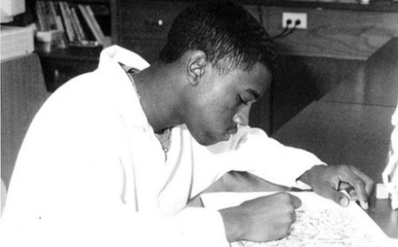 | Smith trong một bức ảnh đang miệt mài học tập. |