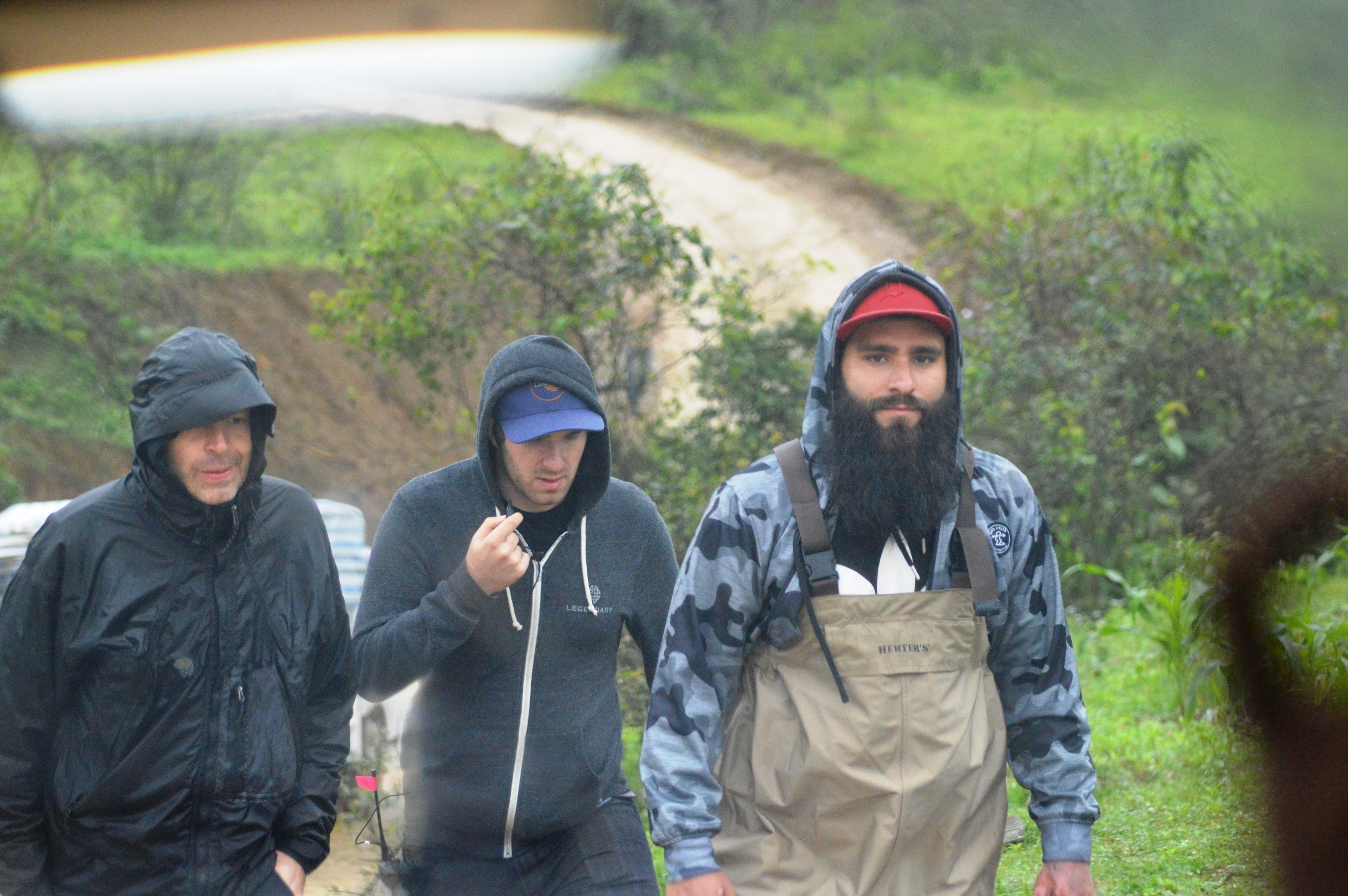 Jordan Vogt-Roberts đi khảo sát một số vị trí tại phim trường trước cửa hang Chuột ở thung lũng Tân Hoá, huyện Minh Hoá. Ảnh: Văn Được. |
