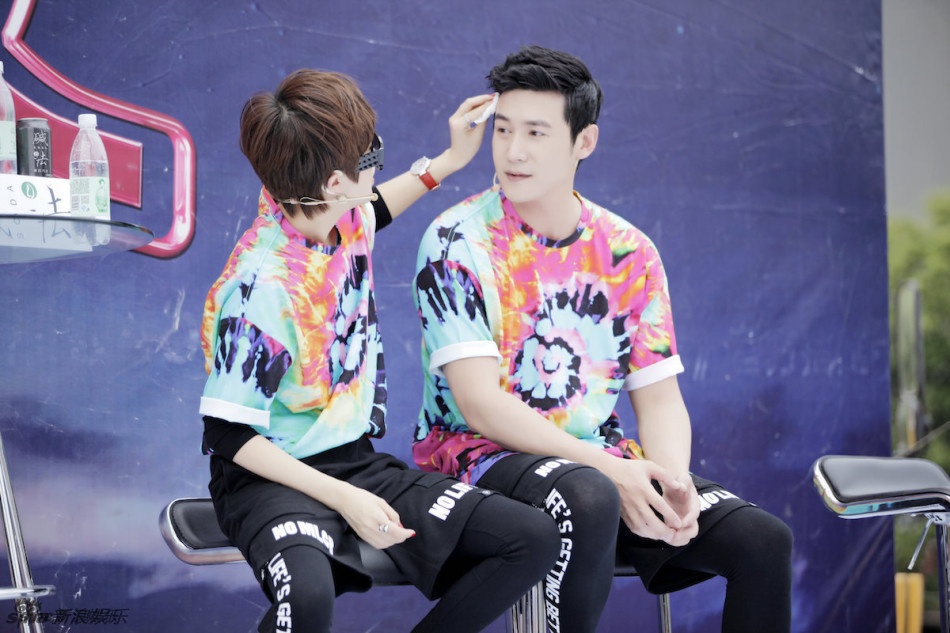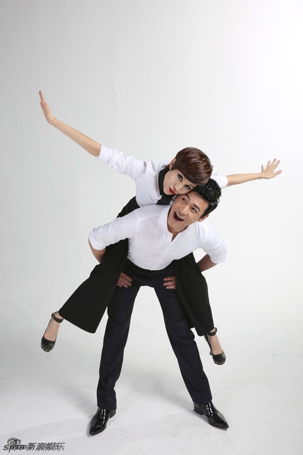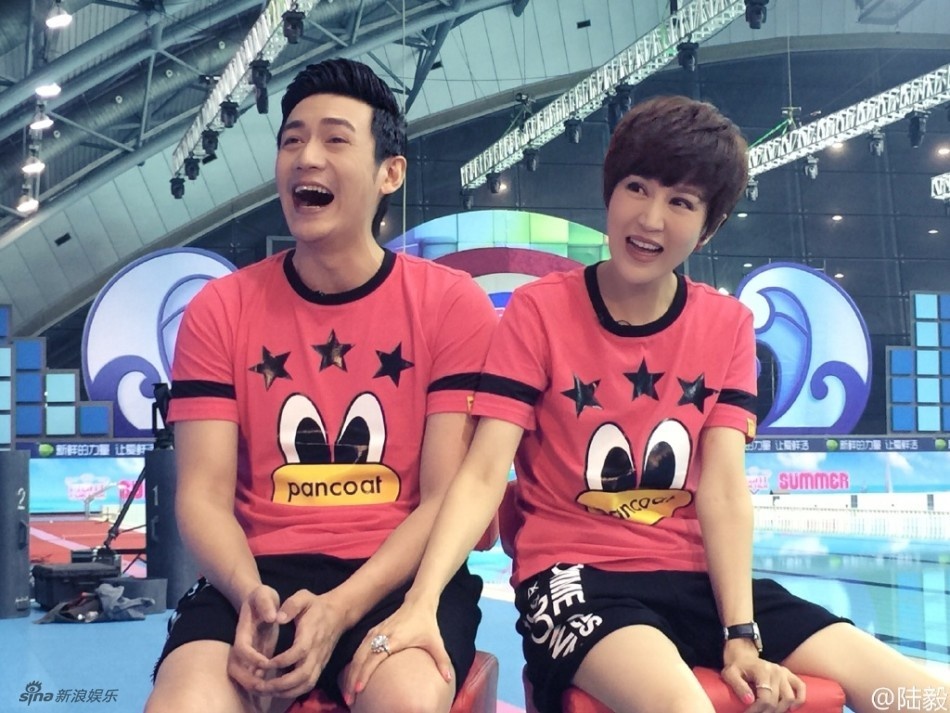 | Tài tử Vân Trung Ca bên vợ khi tham dự một show truyền hình. |